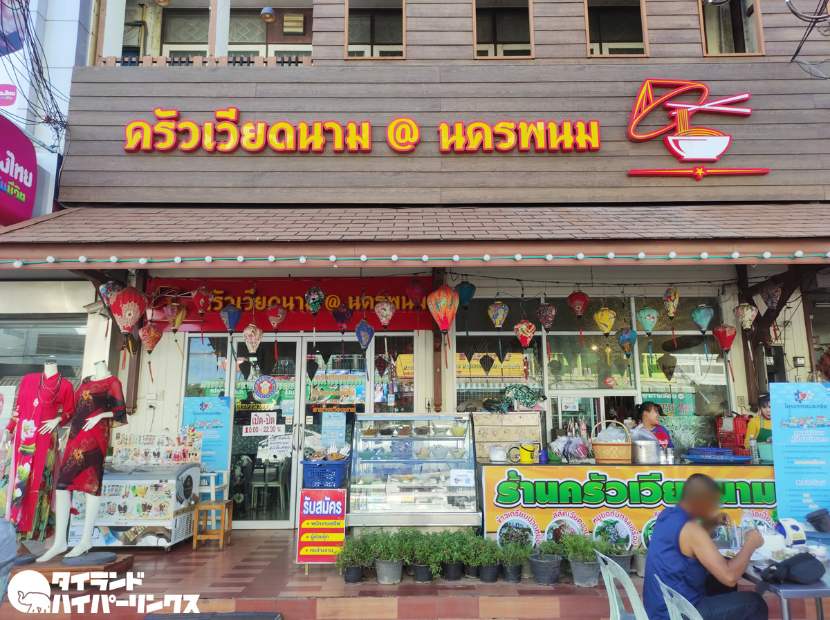 ベトナム系住人が多く住むタイ東北部ナコンパノムということで、ベトナム料理が食べられるレストランも多数。そんな中でランチに訪れたのが、街のシンボルである黄金のナーガ像から徒歩10分ほどの場所にある「クルアベトナム@ナコンパノム(ครัวเวียดนาม@นครพนม)」です。