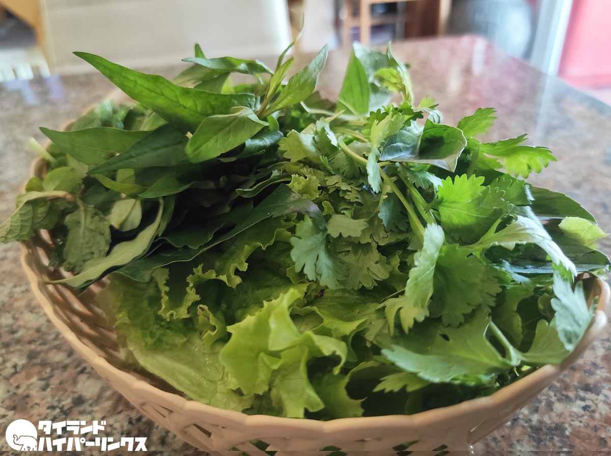 まず運ばれてきたのは山盛りのレタスやパクチーなどのハーブ。これ食べ切れるの?と思いましたが、結果から言うと全部食べました(笑)。まあ、食べ切る必要もないですが・・・。