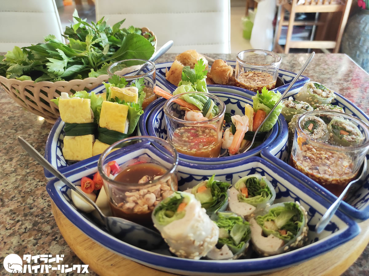 どれも野菜がたっぷりですが、さらにレタスで巻いたり、ハーブを添えたり、ランチだけで一体どれだけの野菜を摂ったことでしょう!お腹いっぱいなのに、お腹はスッキリした気分で、健康になった気になれました(笑)。