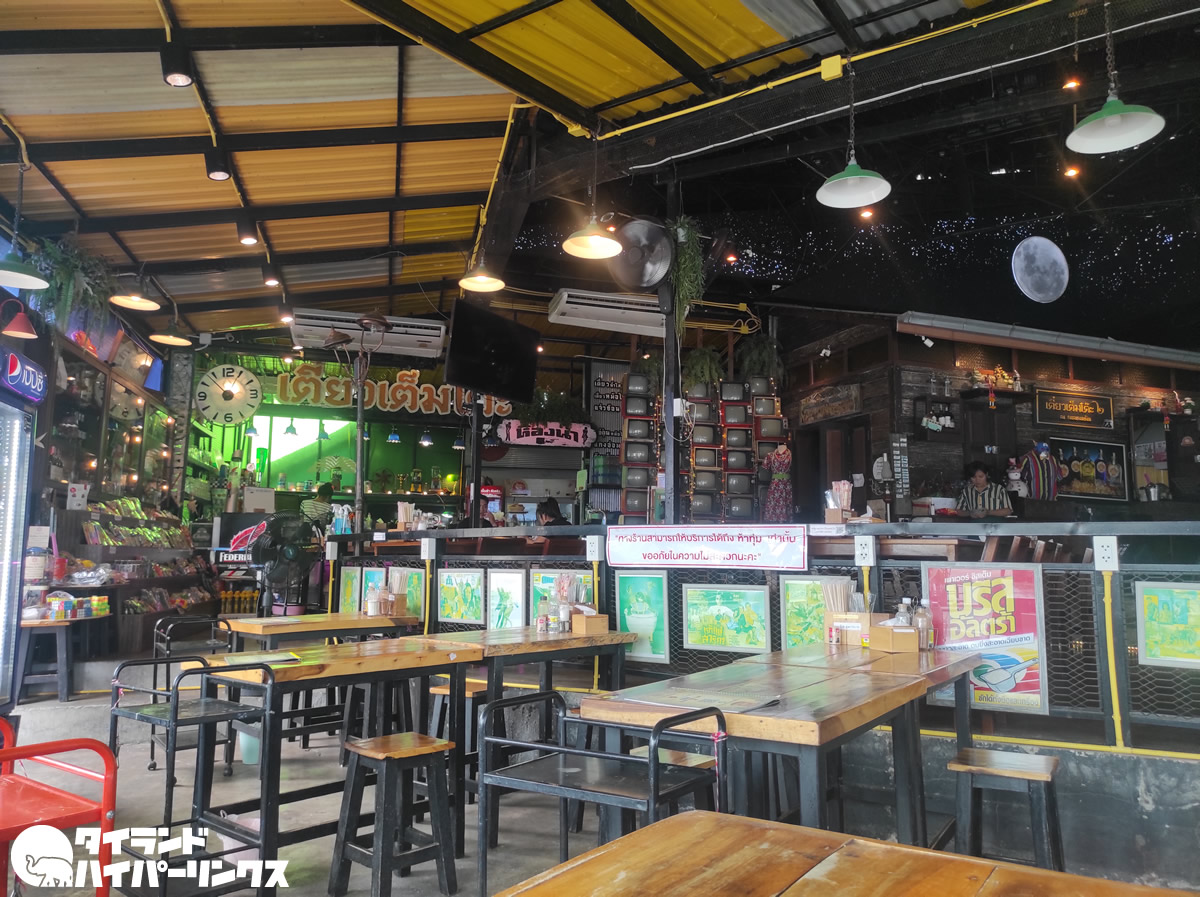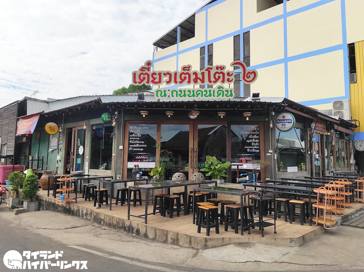 前の日の夜、ベトナム時計塔近くで多くの若者で賑わう「ティアオテムト2 タノンコンドゥーン(เตี๋ยวเต็มโต๊ะ 2 ณ ถนนคนเดิน)」を発見。店内で生演奏を聞きながら、料理を楽しめる洒落たレストランです。