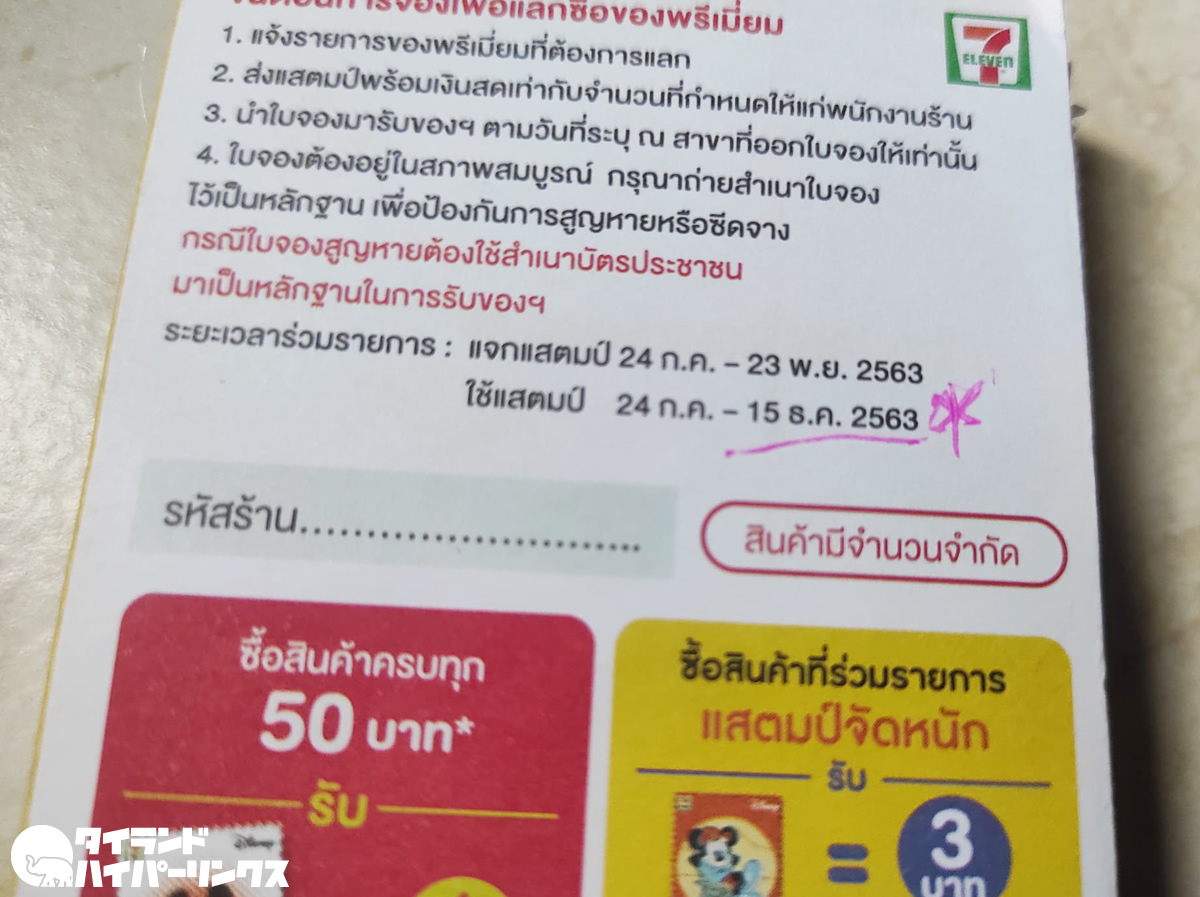 今年からはセブンイレブンのアプリにスタンプを貯めることができる「Mスタンプ」もスタートしましたが、アプリの利用はタイ人のみのようですので、日本人の殆どは普通のスタンプを貰っていたのではないでしょうか。