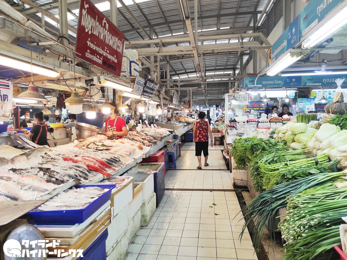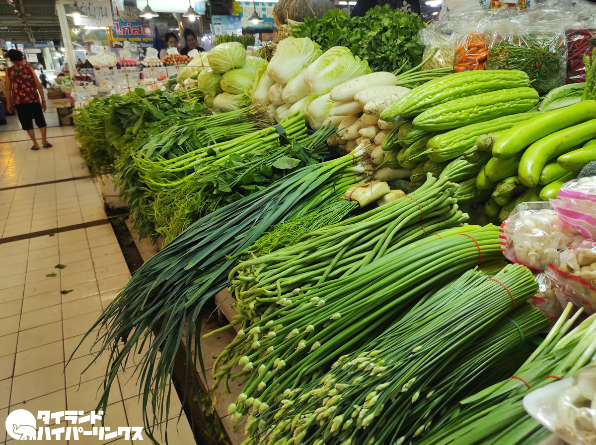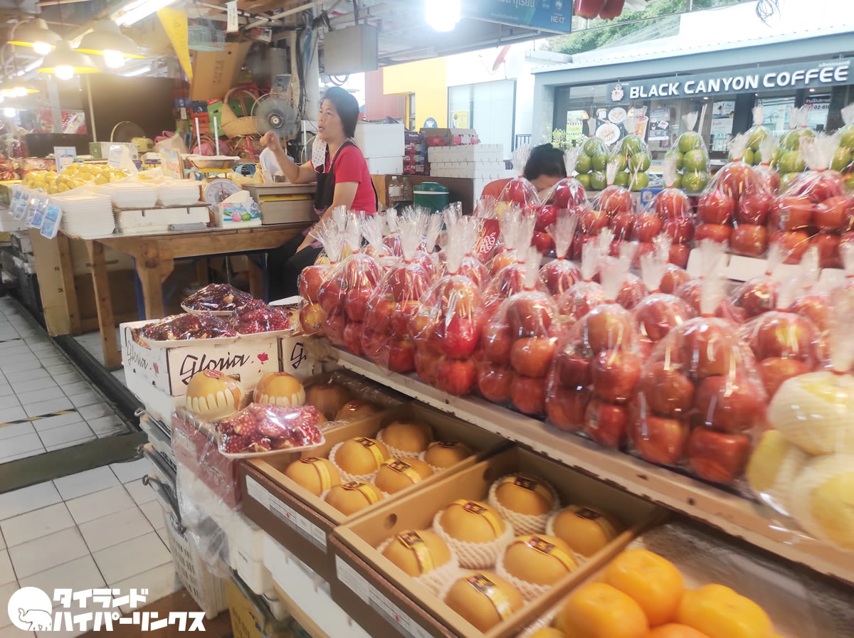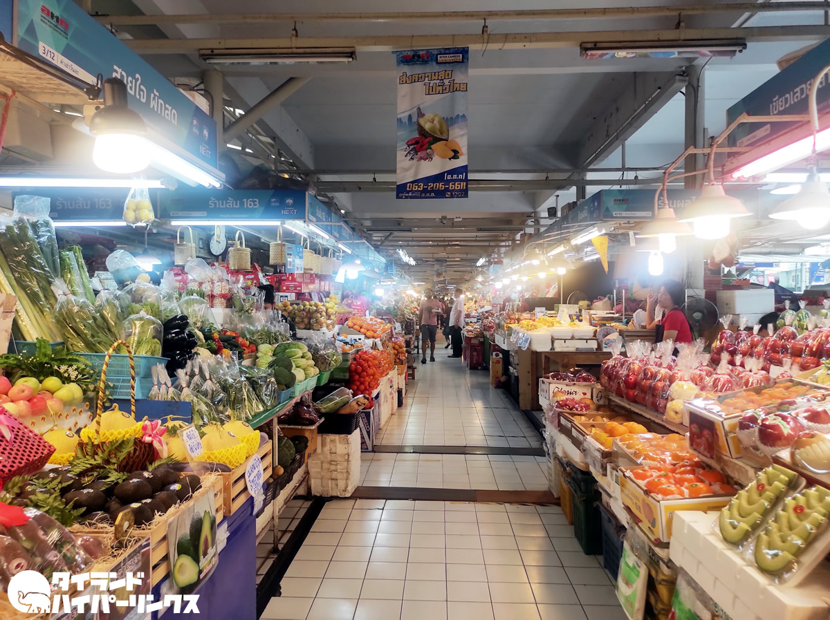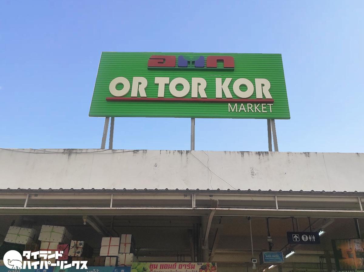 タイの農業協同組合(オートーコー)が経営する・オートーコー市場。傷一つ無い綺麗なフルーツや野菜、魚に肉などお値段高めの商品がならぶ、セレブな人が買い物に訪れるとも言われる市場です。