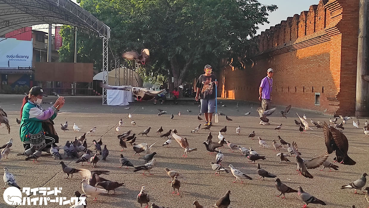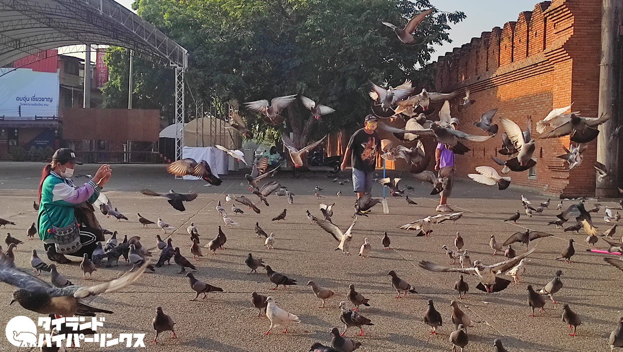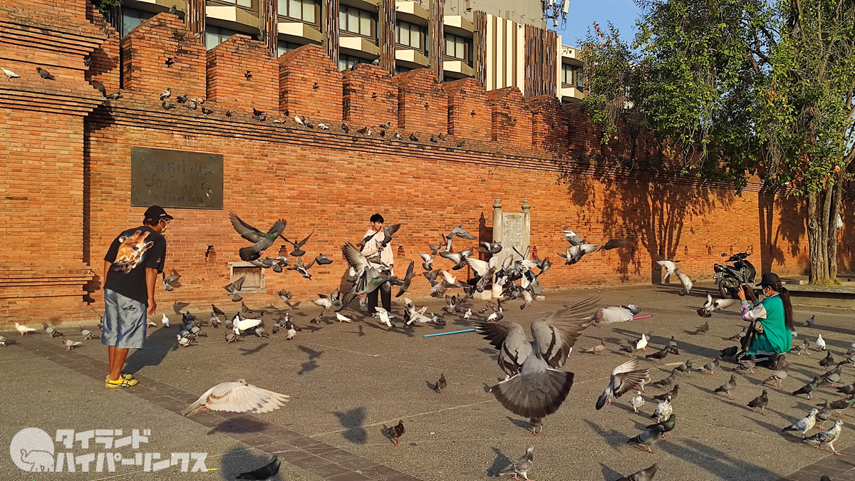 北タイの古都・チェンマイ旧市街のターペー門といえば鳩でしょうか。ここを訪れる観光客らは、門と鳩と一緒に記念撮影をするのがお決まりです。