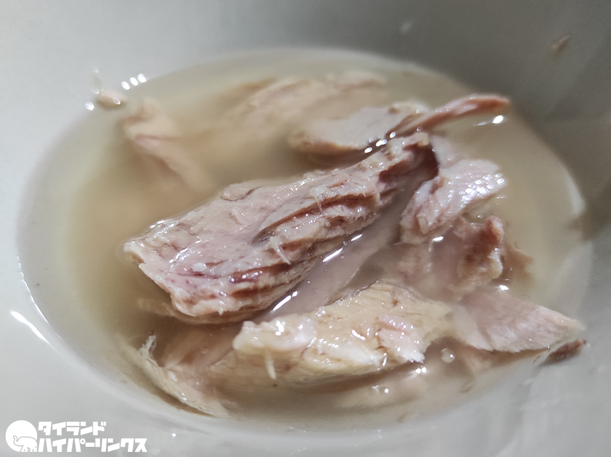 早速持ち帰り、皿に盛って実食。なるほど、鰹だし風味それほど強くなく、日本人からすれば「和風」という感じは薄いかもしれませんね。ただし美味しいツナ缶であることには違い有りません。