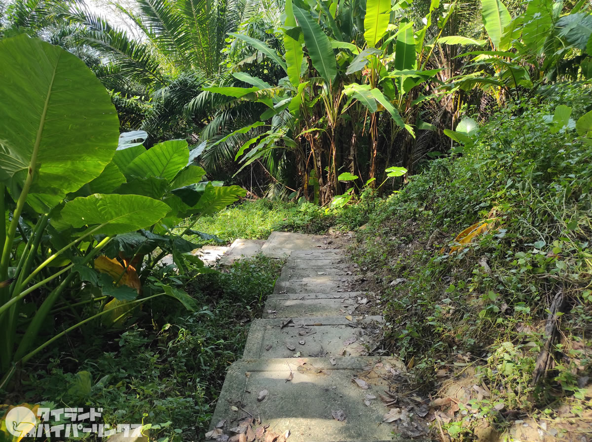 フリーダムビーチまでは10分ほどの道のりなので距離的にも結構ありますし、ビーチサンダルだったので、更に険しさが増します・・・。まだ着かないか?と思ってると、やがて階段に到着。
