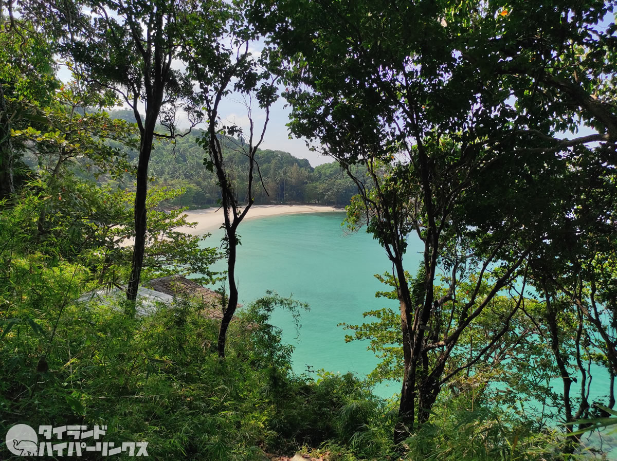 しかしその先を更に進んでみると、道路脇に小屋を発見。小屋にいた男性に話を聞いてみると、ここもフリーダムビーチに降りて行く人達のための駐車場とのことでした。その場で50バーツを支払って、ドアの先のフリーダムビーチへと続く道へ進みます。