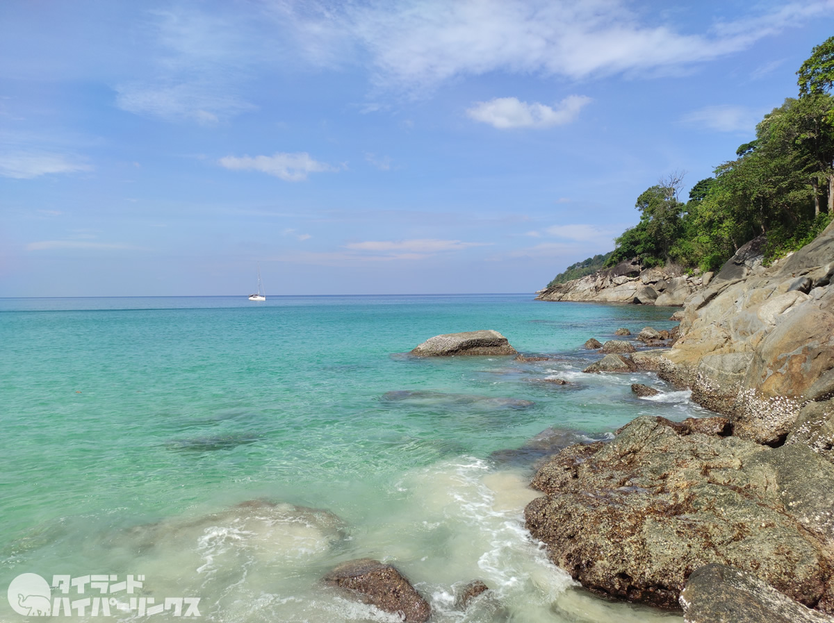 到着したのは上の写真の、手前の小さなビーチ。岩の向こうの南側の大きい方のビーチが、本当のフリーダムビーチなのかも?