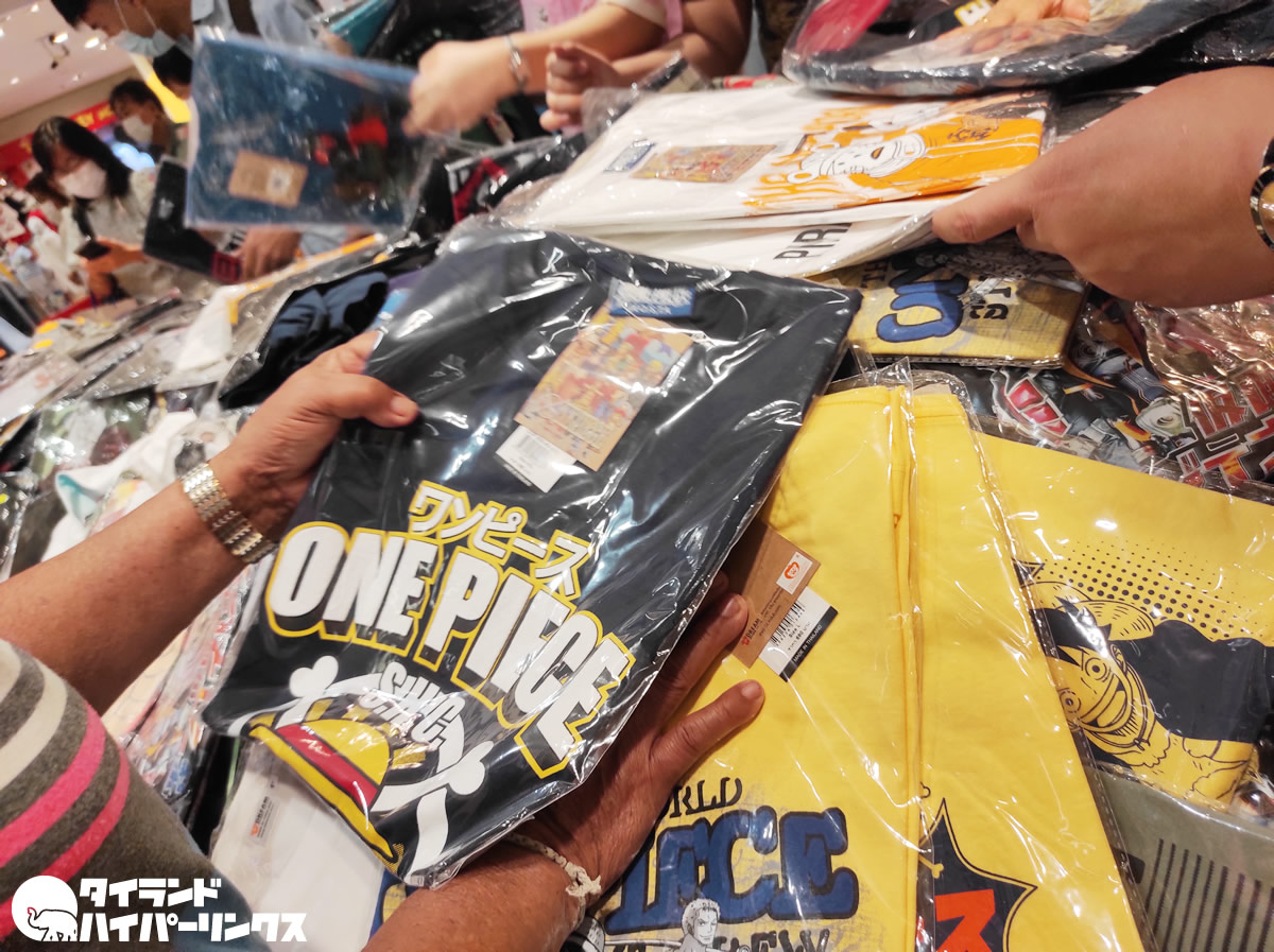 各階を見て回りましたが、最もたくさんの人で賑わっていたのが、人気漫画「ONE PIECE」のTシャツコーナー。みんな「ONE PIECE」が大好きなんですね!