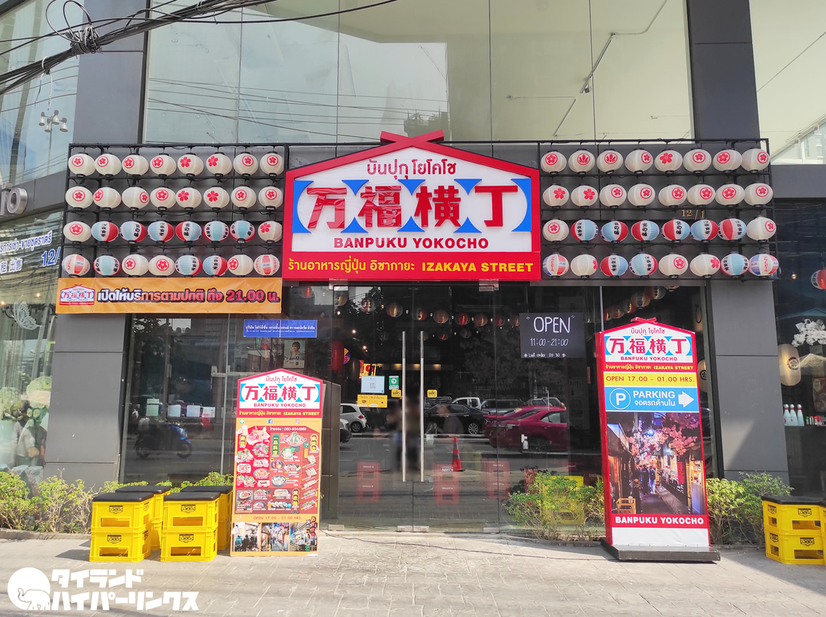 この日にランチで訪れたのは、ラチャダー通りとラマ9世通りの交差点にある「万福横丁(BANPUKU YOKOCHO)」。2020年11月末にオープンして以来とても人気のようで、年末に夕食で行ってみようとお店のLINEで夜の開店数時間前に予約の連絡を入れたら「席が埋まって入れない」と言われたほどです。