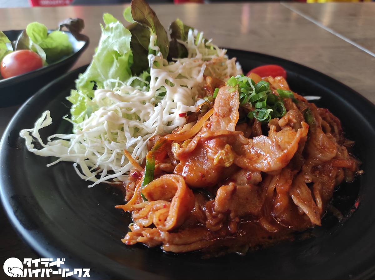 「万福横丁」では昼は2時間399バーツ、夜は2時間999バーツの食べ放題を実施中ですが、この日オーダーしたのはランチセットの「豚キムチセット」(220バーツ+税)です。