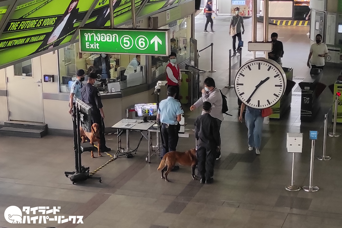 なお探知犬を駅で見かけたのは、3年ほど前のBTSモーチット駅に続いて2度目。乗客に反応するところを見てみたいものですが、もしそんなことがあれば一大事ですね。