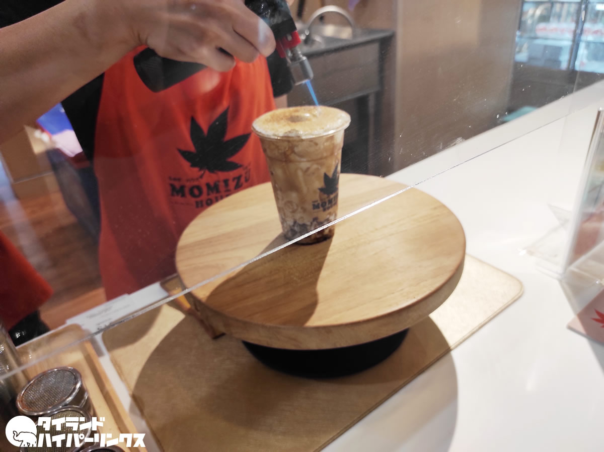「Hokkaido Cheese Burn」を注文し、「甘さ控えめにできますか?」と聞くと、タピオカをブラウンシュガーのゼリーに変更することで、多少は甘さを抑えられるのとのこと。それでお願いします!