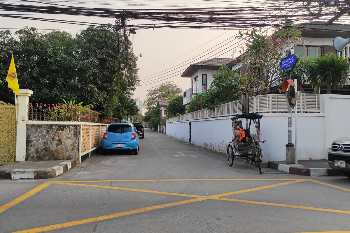 バンコクとその近郊の路地の入り口では、客待ちでバイクタクシーが停まっているのが普通なのですが、ティワノン通りソイ3ではバイクタクシーは見かけず、みんなサムローを利用しているようです。
