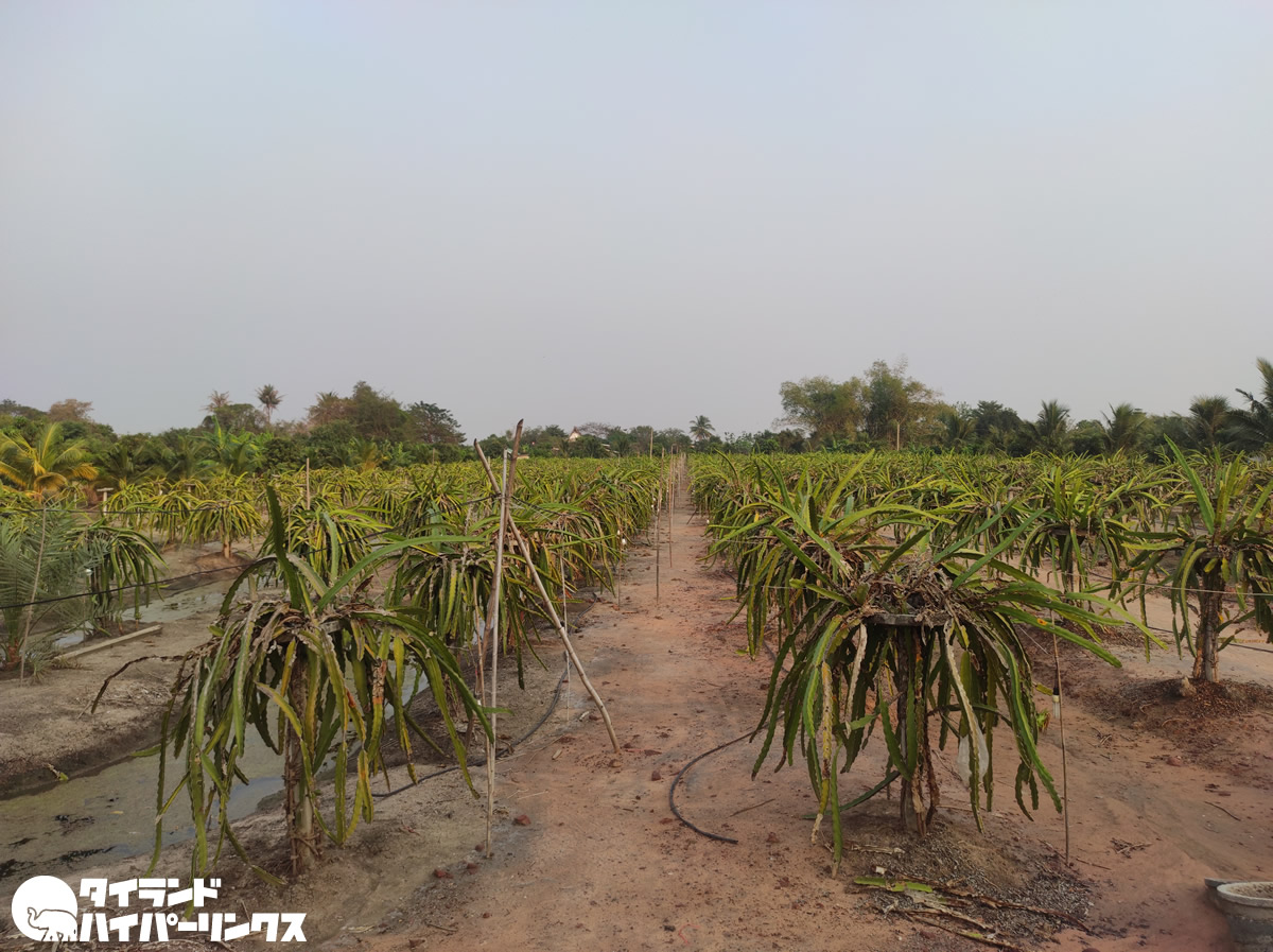 そんなドラゴンフルーツはタイ中部ラチャブリ県も名産地の一つだそうで、通りがかった「Suan Kaew Preawa Resort(สวนแก้วแพรววา รีสอร์ท)」のドラゴンフルーツ畑を見せてもらいました。