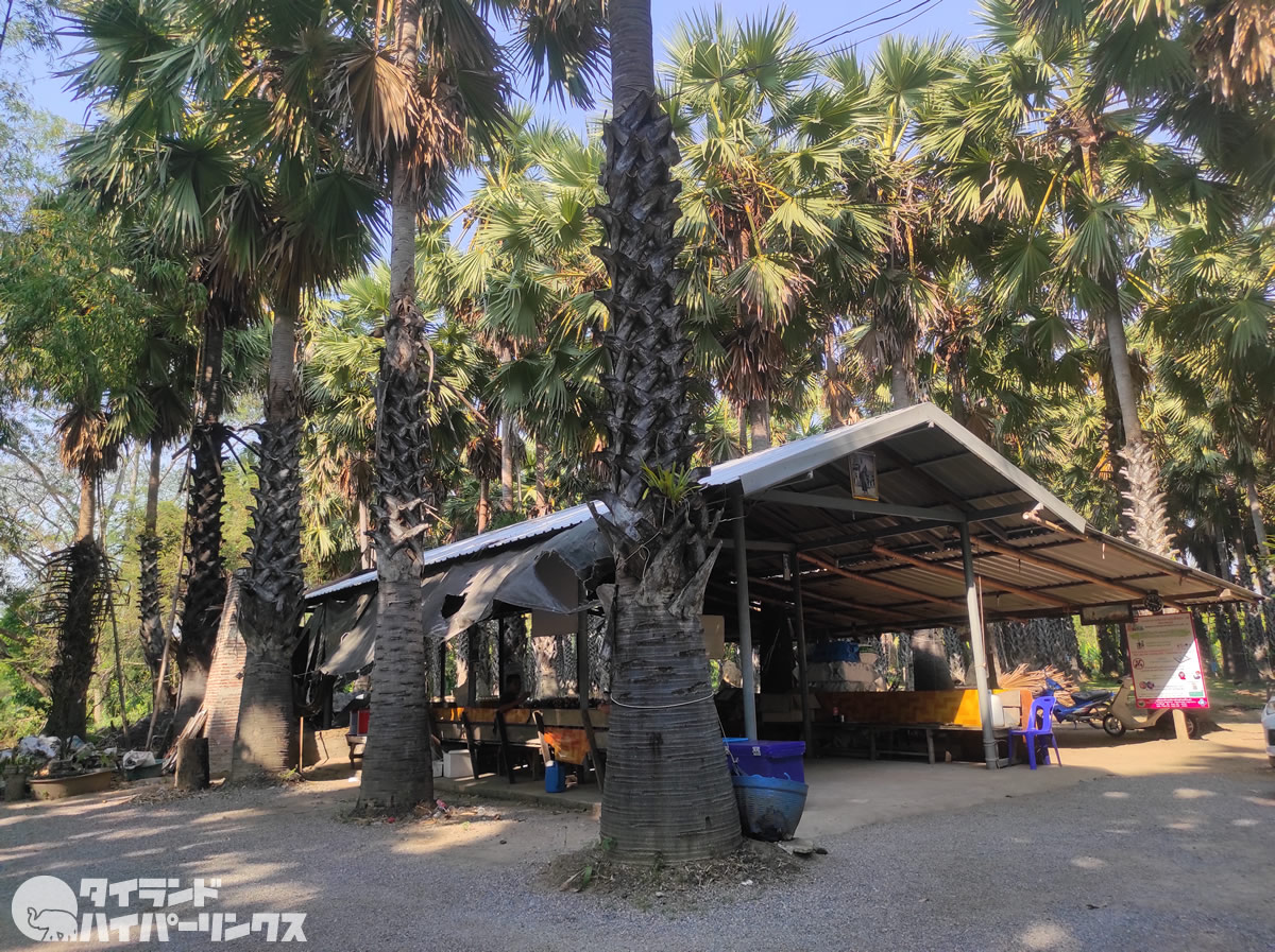ここを訪れた目的は、「ナムターンソッド(น้ำตาลสด)」というヤシの木ジュースを飲むこと。日本語ではオウギヤシと呼ぶトンターン(ต้นตาล)というヤシの木の雄株の花序の液を採取し、煮て出来上がったのが「ナムターンソッド(น้ำตาลสด)」です。
