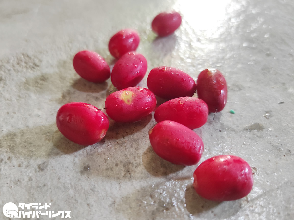 調べてみると「ルークマハサチャン」は英語で、「ミラクルフルーツ」とか「ミラクルベリー」と呼ばれるようです。タイ語でも「ミラクル(มิราเคิล)」と言ったりするようですね。