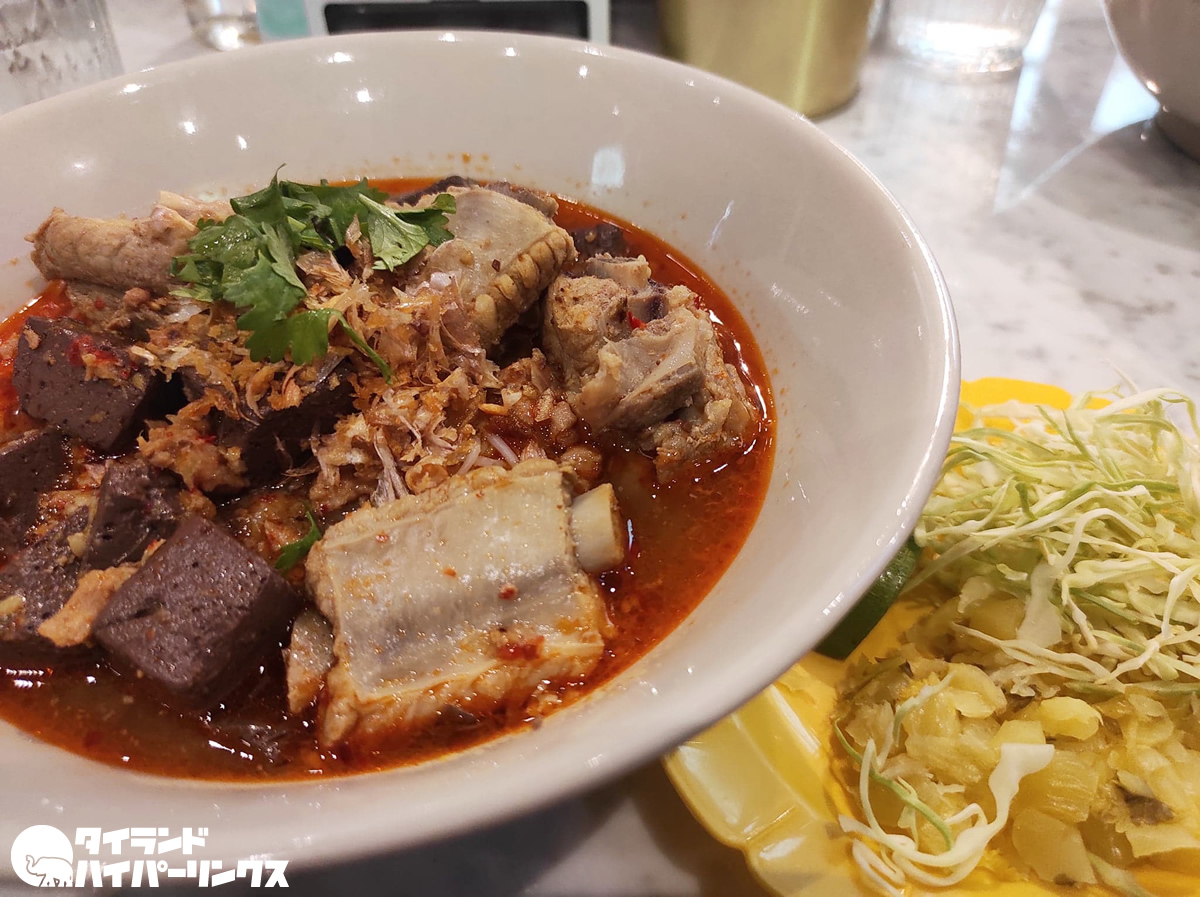 こちらも北タイ名物。米粉麺カノムチンのナムギアオは89バーツ。