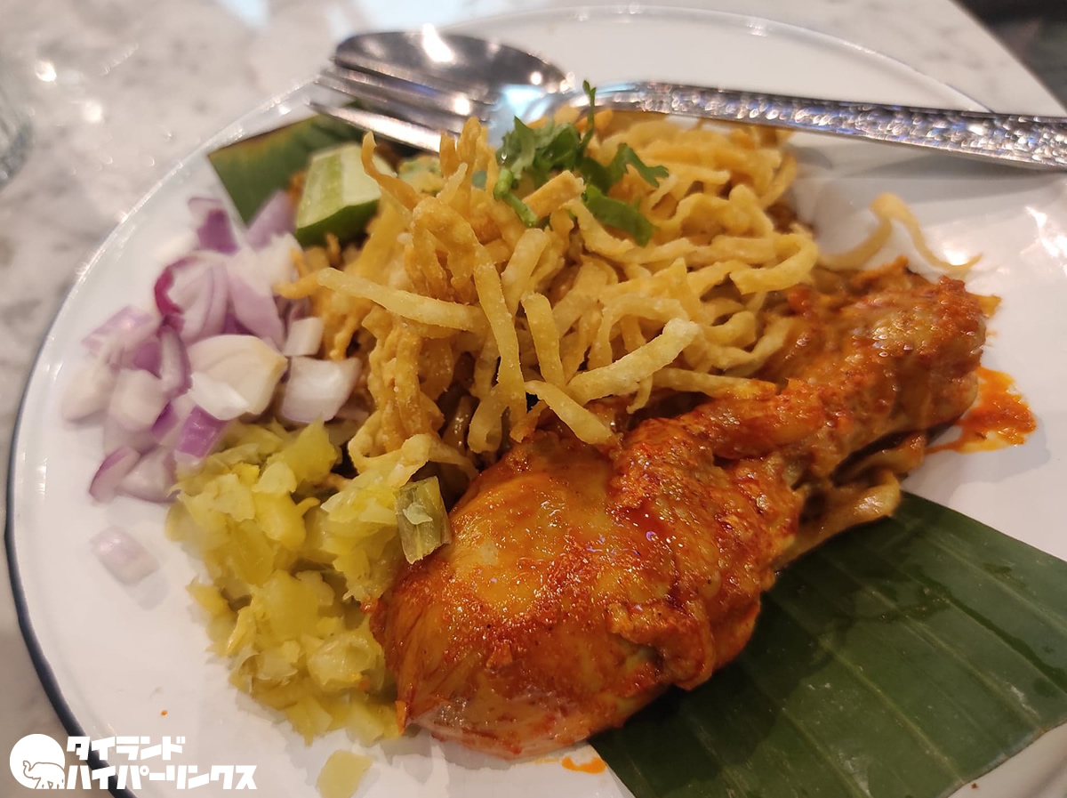 スープなしのカオソイもありました。鶏肉入りで89バーツ。
