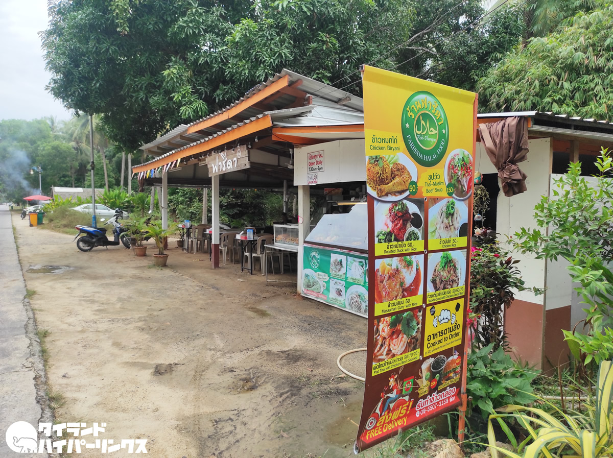 パンガン島在住アメリカ人の友人から「最高のカオモックガイがある方食べに行こうぜ」と誘われ、「すぐこの近くだよ」とバイクを走らせることパンガン島のロータリーから5分ほど。
