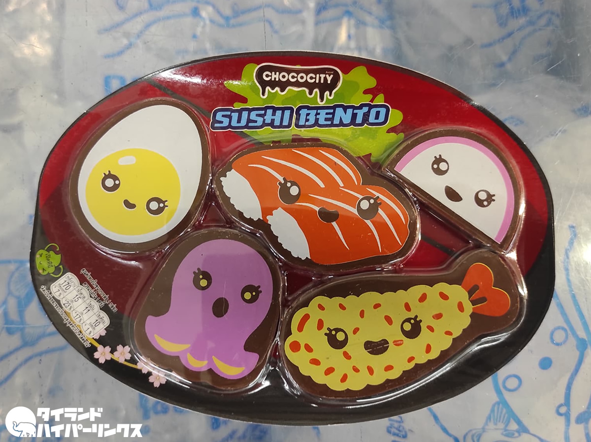 コンビニで見つけた「寿司弁当(SUSHI BENTO)」。とは言っても、本物の寿司でなくCHOCOCITYブランドのチョコレートです。