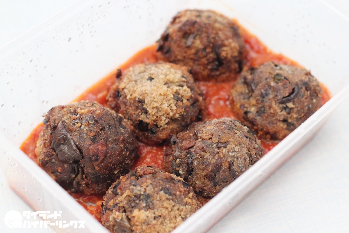 そして、「茄子のトマトソース&卵(EGGPLANTBALLS, WITHTOMATO SAUCE ANOSTRACCIALTLEA)」(400バーツ)。ミートボールのような見た目ですが、優しい食感の茄子のコロッケ版といった感じの味。