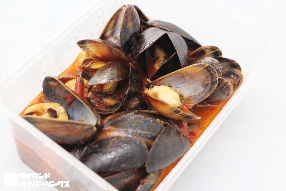 「ブショームール貝のアラビアータソース炒め(COZZE ALIA MARINARA)」(490バーツ)は、スパイシーなソースが絶妙!今回の食事会、時節柄、アルコール抜きの「自己自粛」でした。もともとあまり飲む方ではないので個人的には全然OKでしたが、これを食べた時はビールが欲しくなりました。