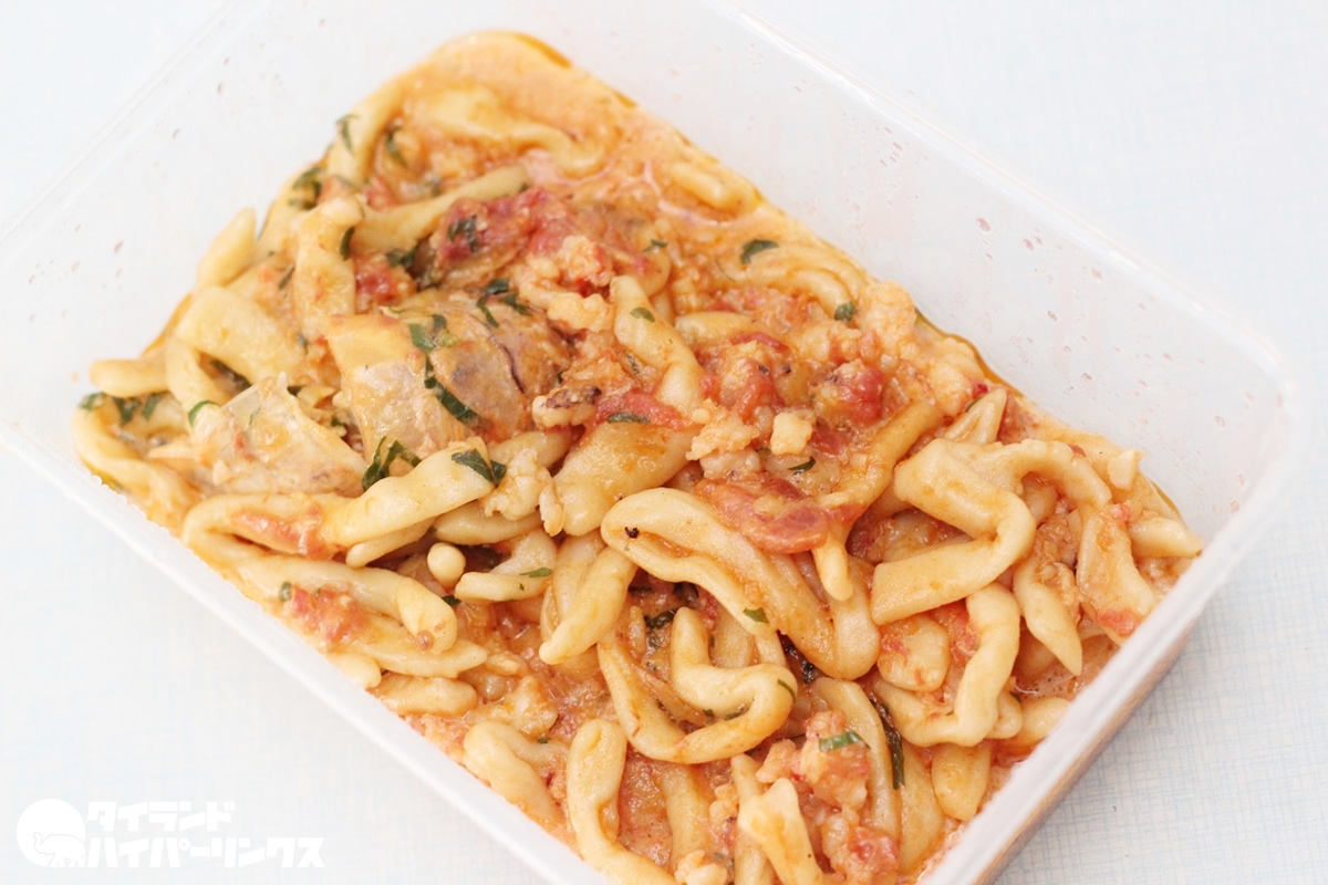 「ザリガニ入りホームメイド・ツイスト・パスタ(STROZZAPRETIALLE CANOCCHIE)」(330バーツ)は刀削麺のように手作り感のある麺で独特の食感があり、ソースによく絡みます。