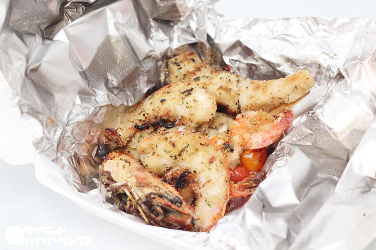 「グリル・ミックスシーフード(GRIGLIATA DI PESCE)」(890バーツ)は海老やイカ、ホタテなど海の幸が満載。