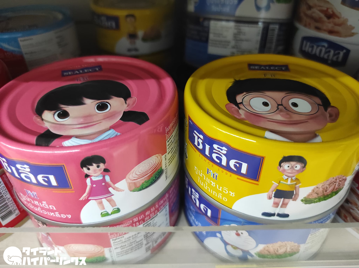 スーパーマーケットの缶詰コーナーで見つけたドラえもんの顔。それはタイ缶詰大手SEALECTの限定版ツナ缶でした。