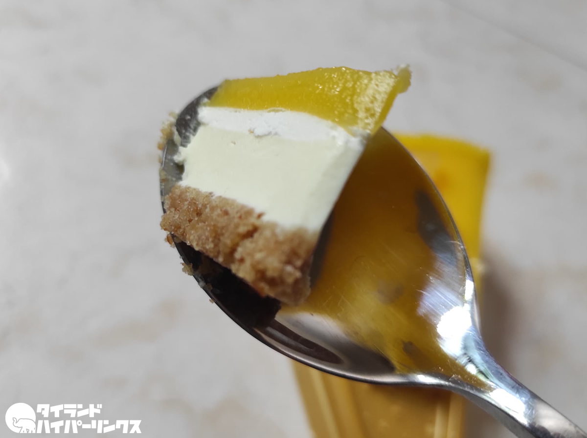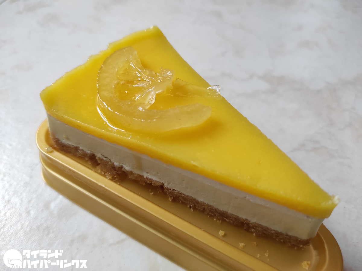 「値段のわりに、なかなか良い」と上々の評判の日本式スイーツシリーズの新商品は「レモンチーズパイ」。価格は一つ35バーツ、日本円にすると約120円です。