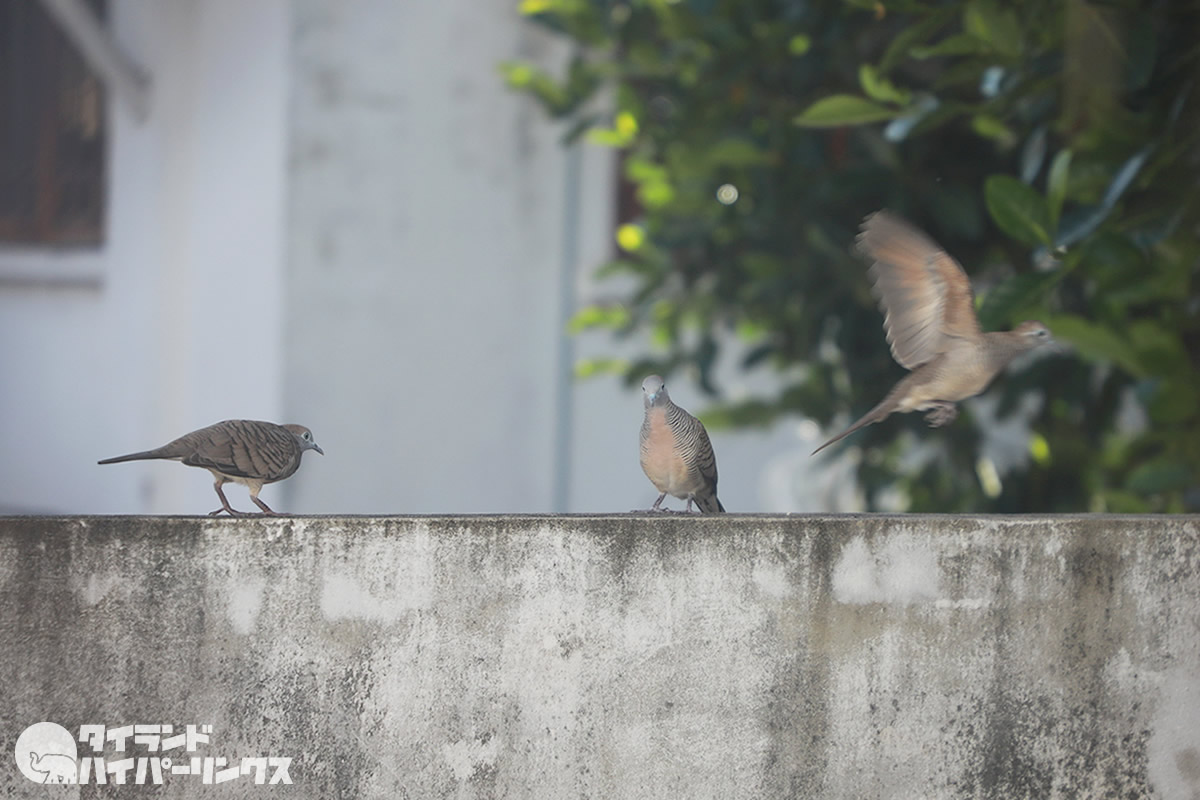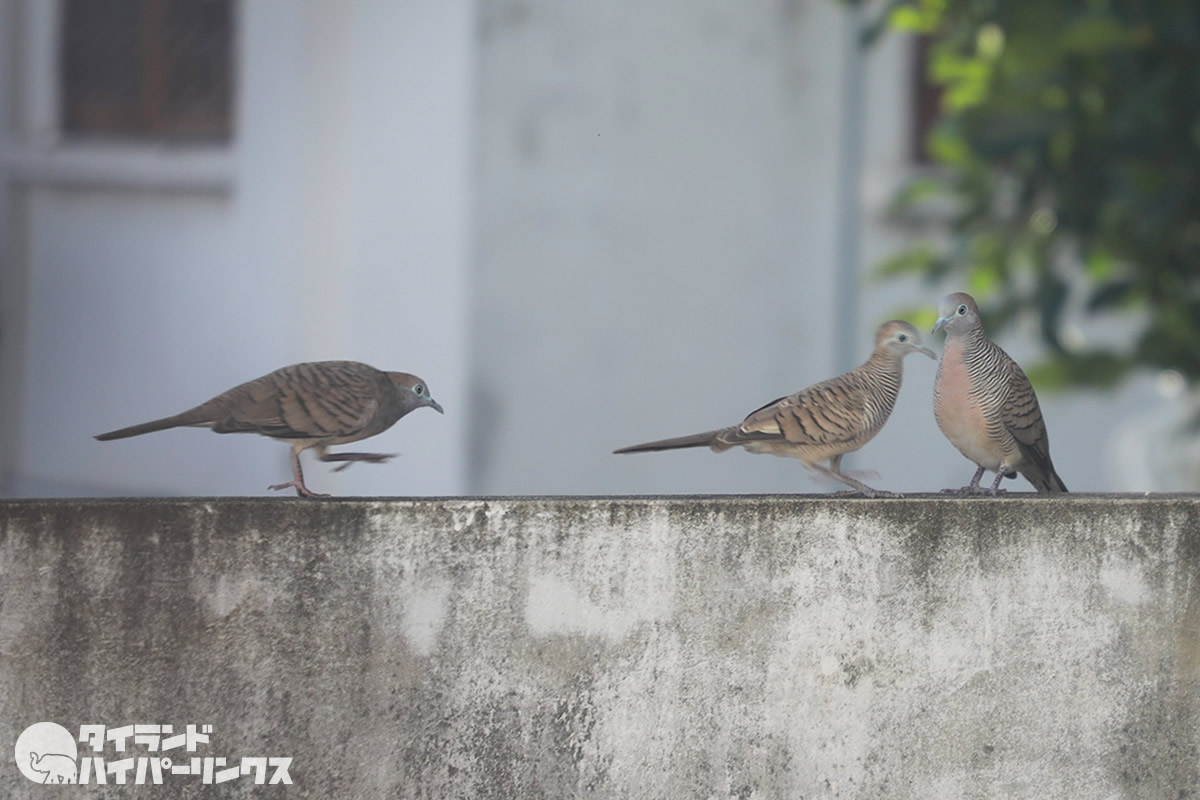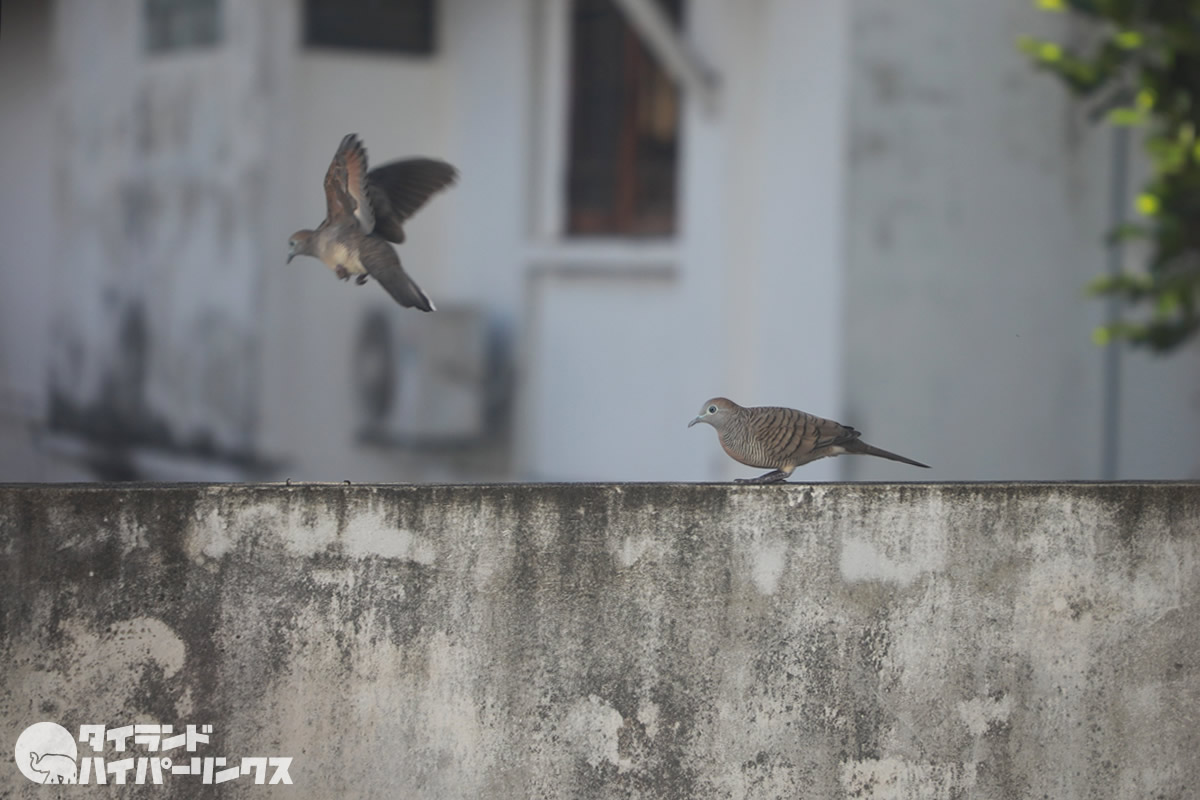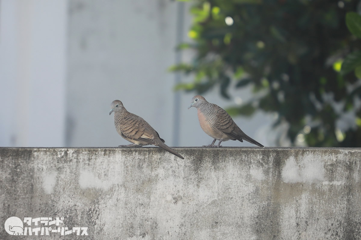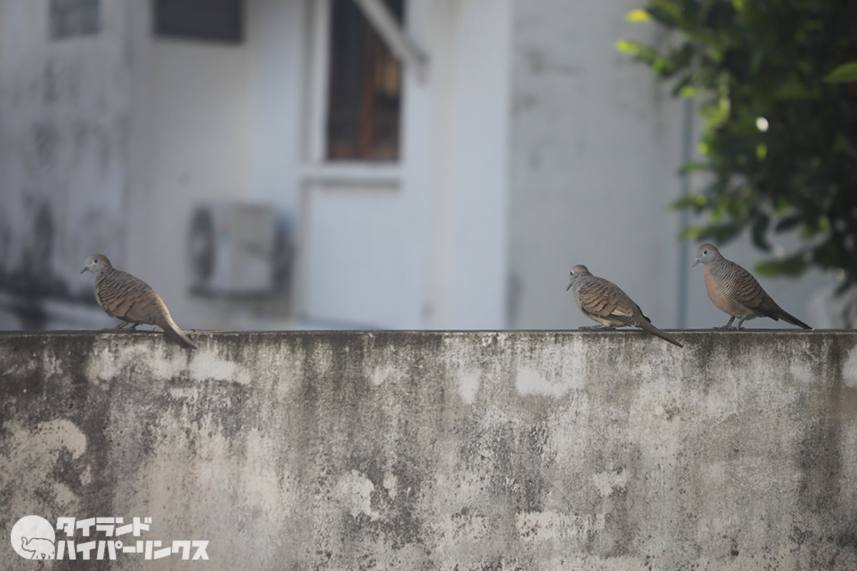 バンコクの街でも度々見かけるこの鳥。調べてみたらチョウショウバト(長嘯鳩)という鳩でした。タイ語ではนกเขาชวา(ノックカオチャワー)。その美しい鳴き声から、コンテストも開催されているようです。