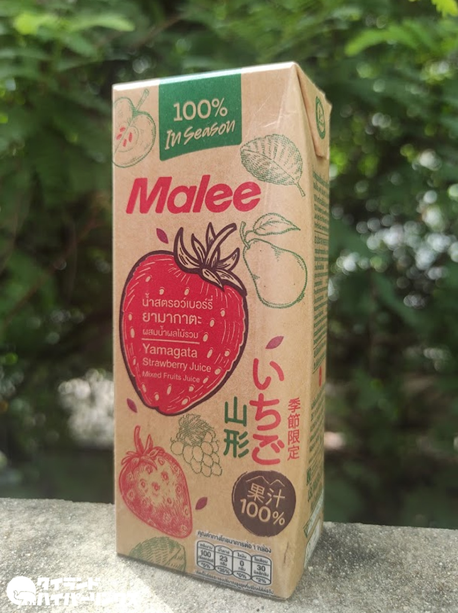 コンビニで発見したのが、季節限定の「山形いちごジュース」(200ml 18バーツ)。果汁100%ミックスジュースということで、このパッケージを見かけたら手を伸ばしてしまうこと間違いなしですね。ただし2ヶ月の限定発売のようで、早めに買わないと、なくなってしまいます。