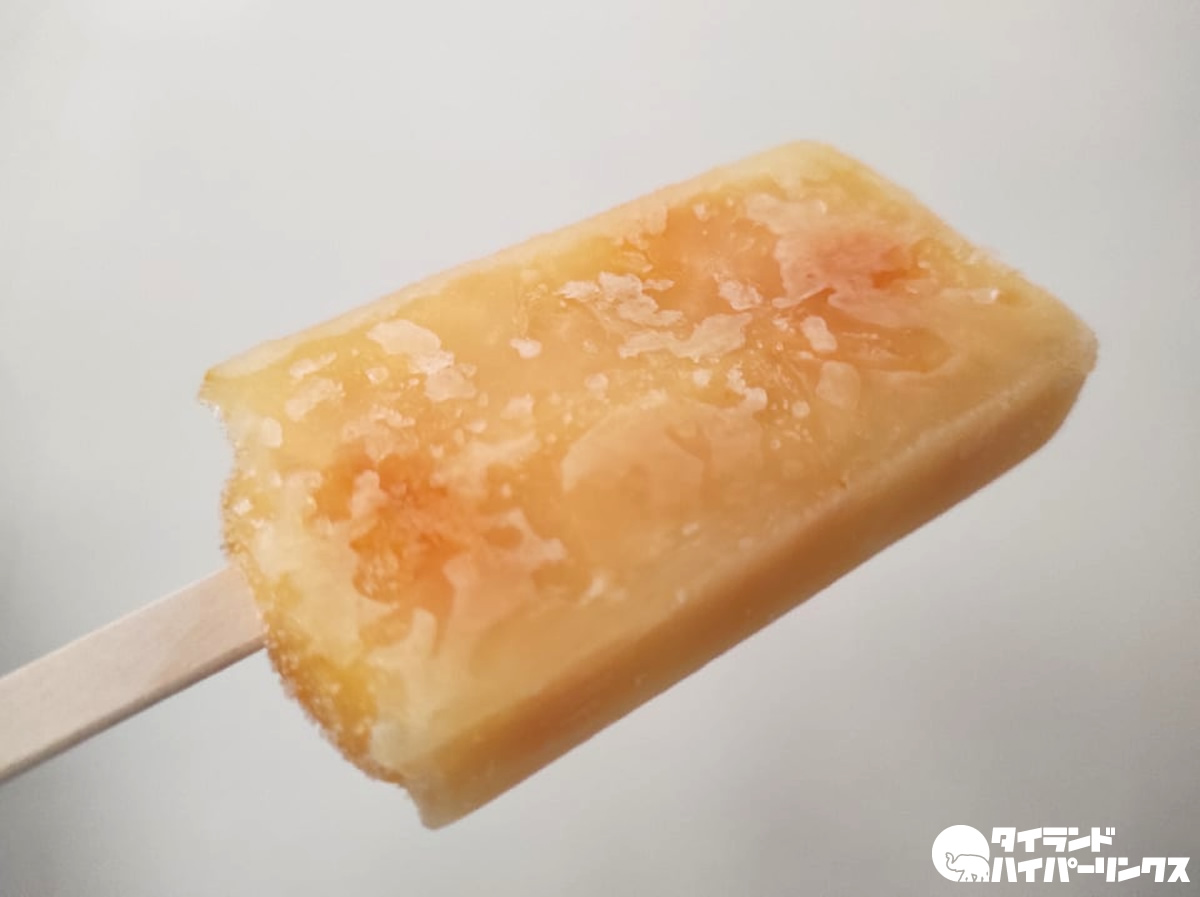 「ガツン、とみかん」は、みかんアイスキャンディーにみかん果汁・果肉30%を詰め込んだもの。タイにいると、日本のみかんを食べる機会が少ないので、みかん果肉が入っていると聞いて「ガツン、とみかん」に飛びつく日本人も少なくないかもしれません。実際、本当のみかんが味わえて、ちょっと日本が恋しくなりました。