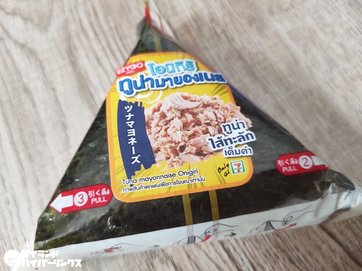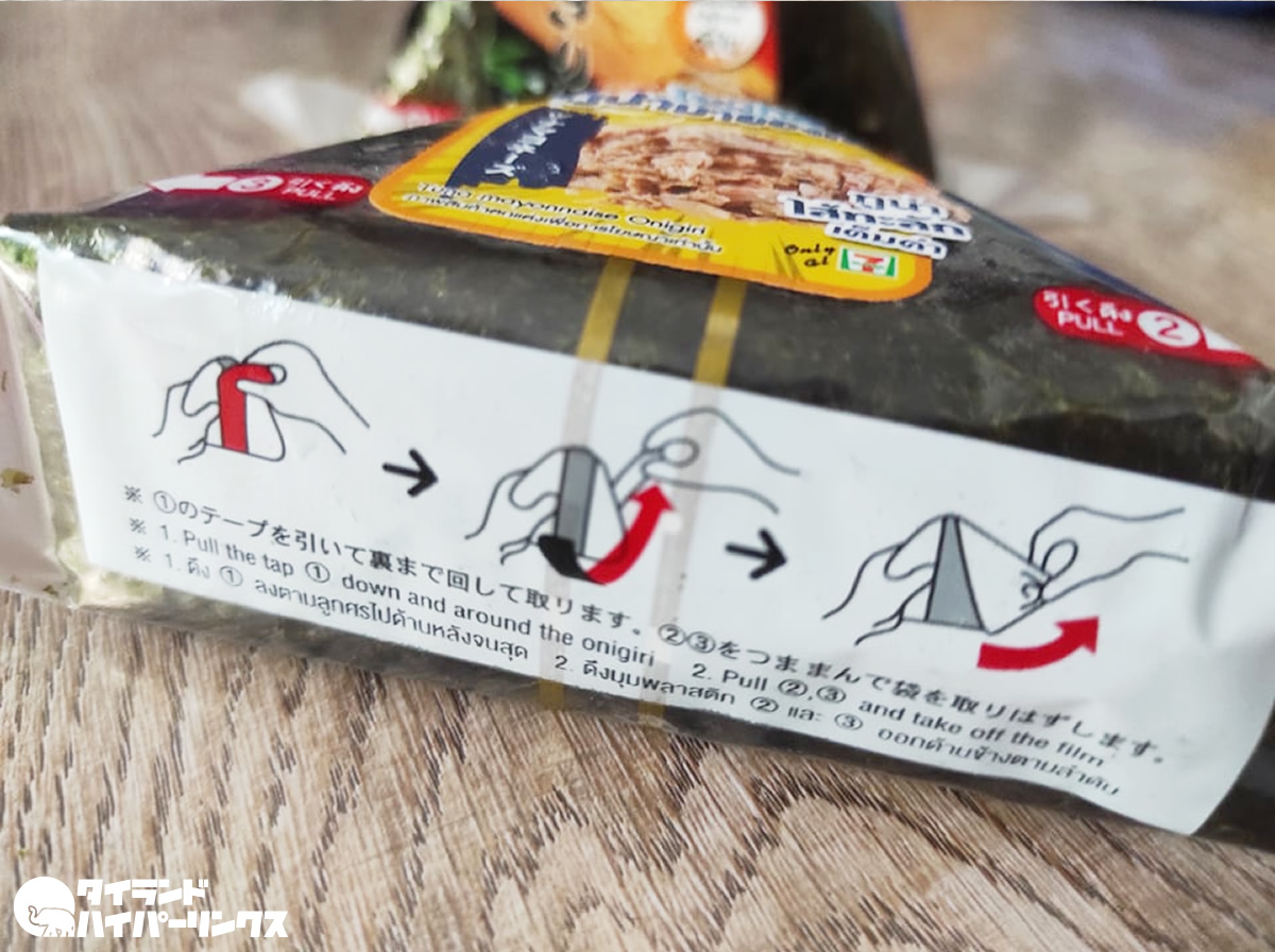 日本のコンビニおにぎりと同様にタイでも、1,2,3で簡単にできあがり。