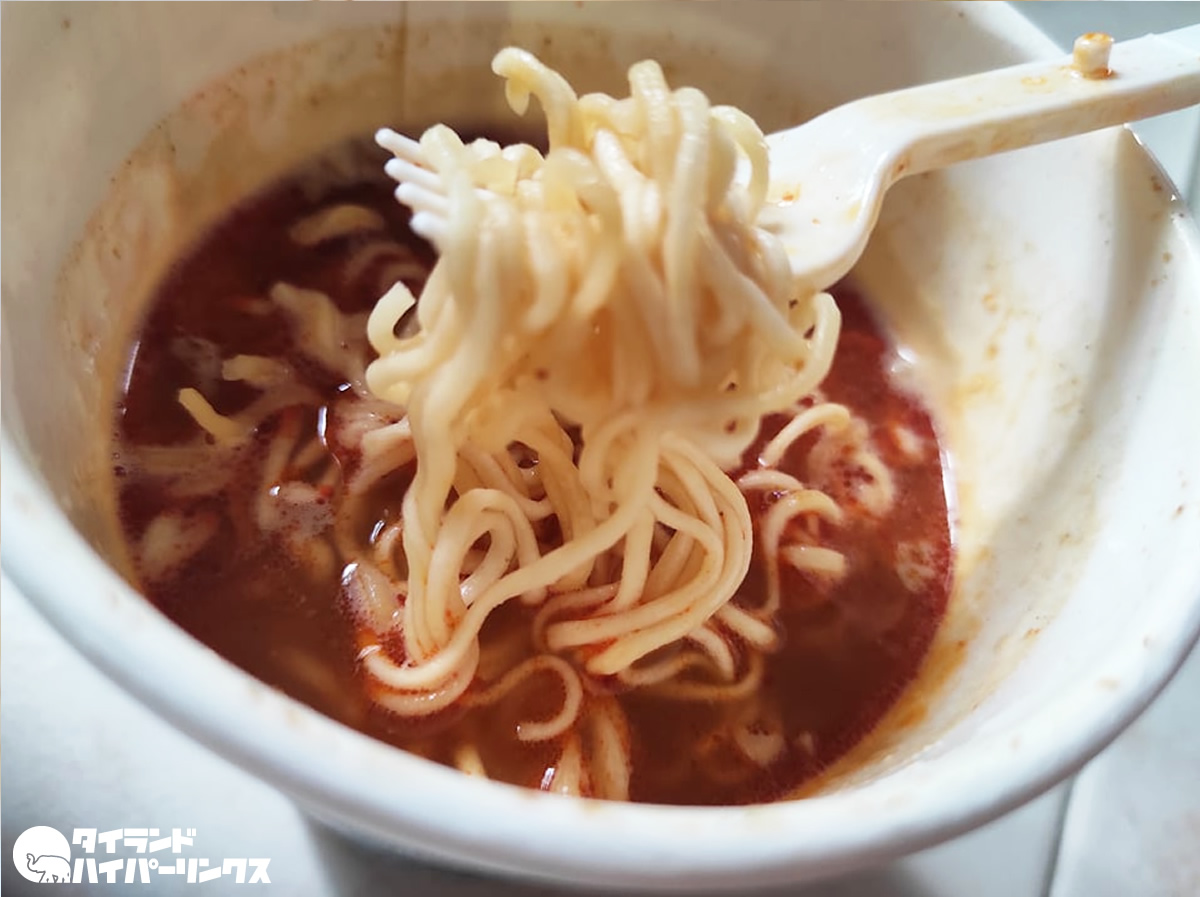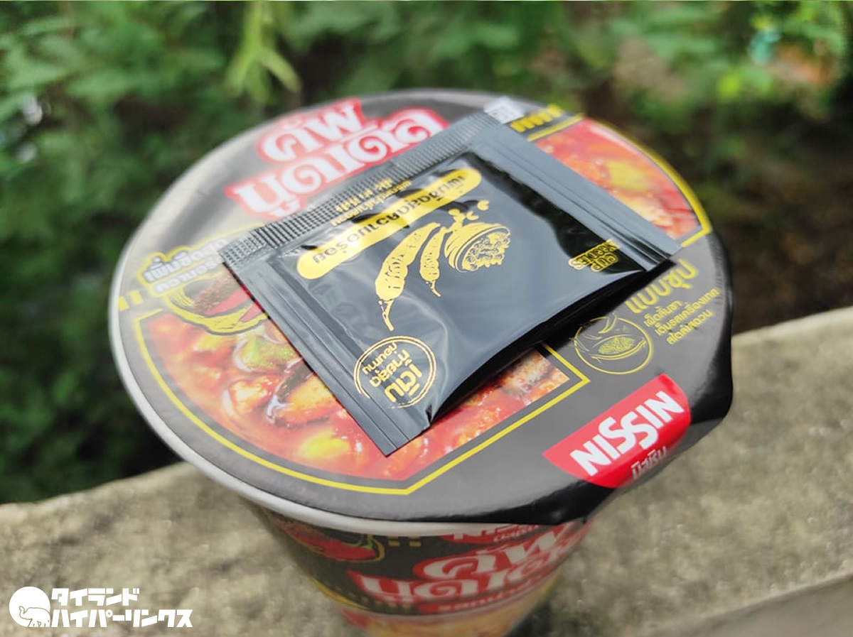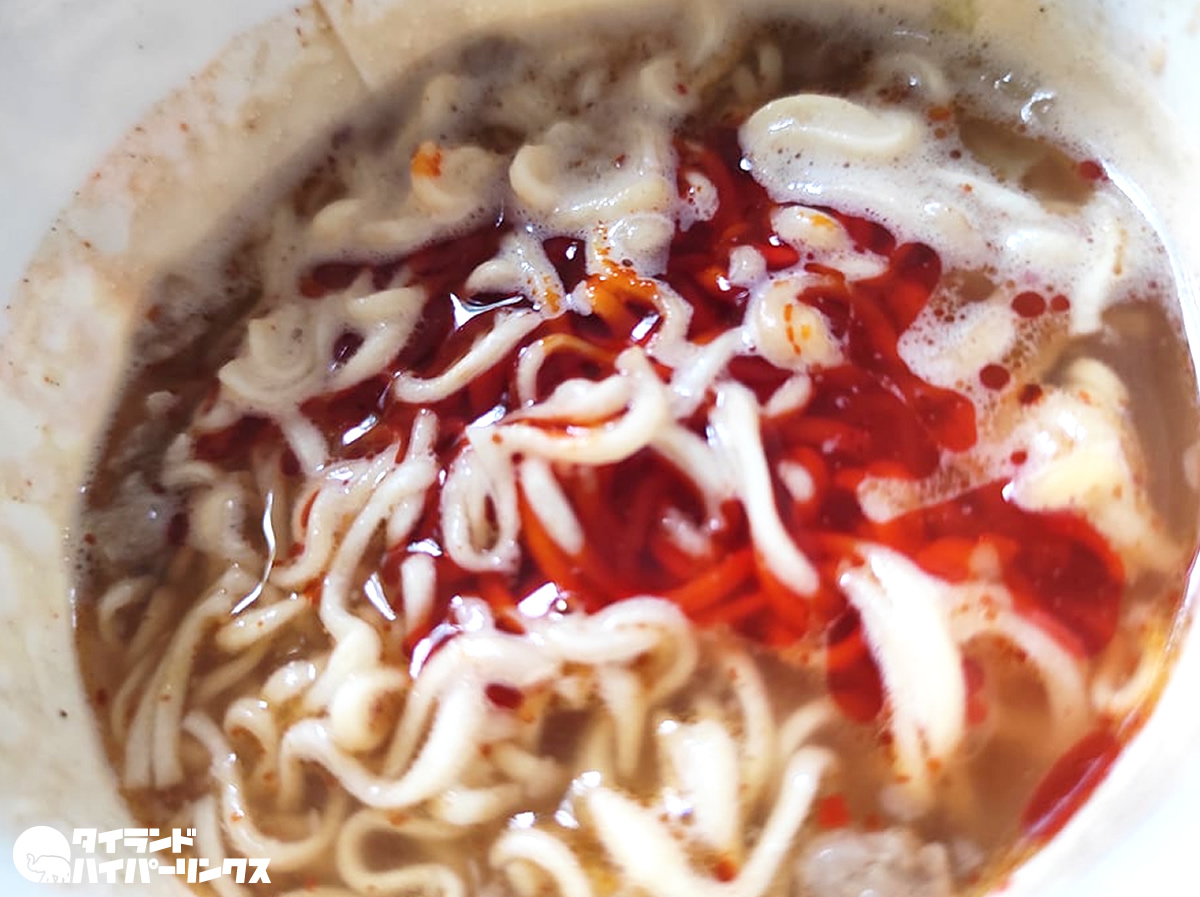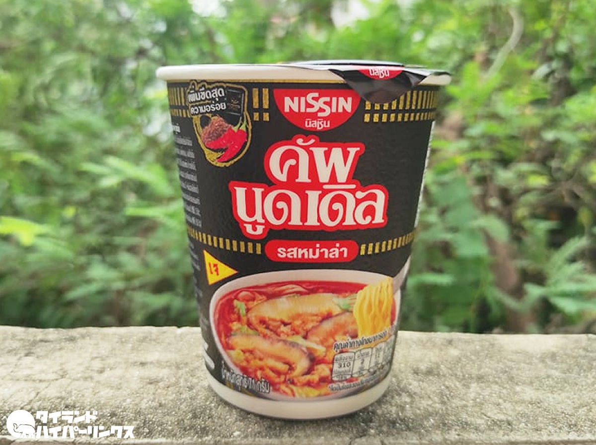 そんなキンジェーに合わせて発売になったのが、タイ日清の「カップヌードル麻辣風味」です。価格は一つ18バーツ。