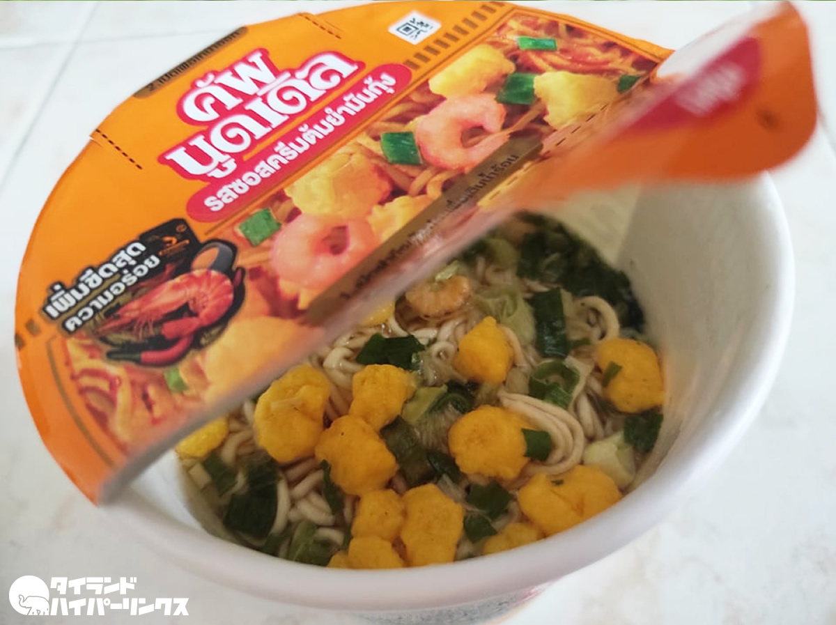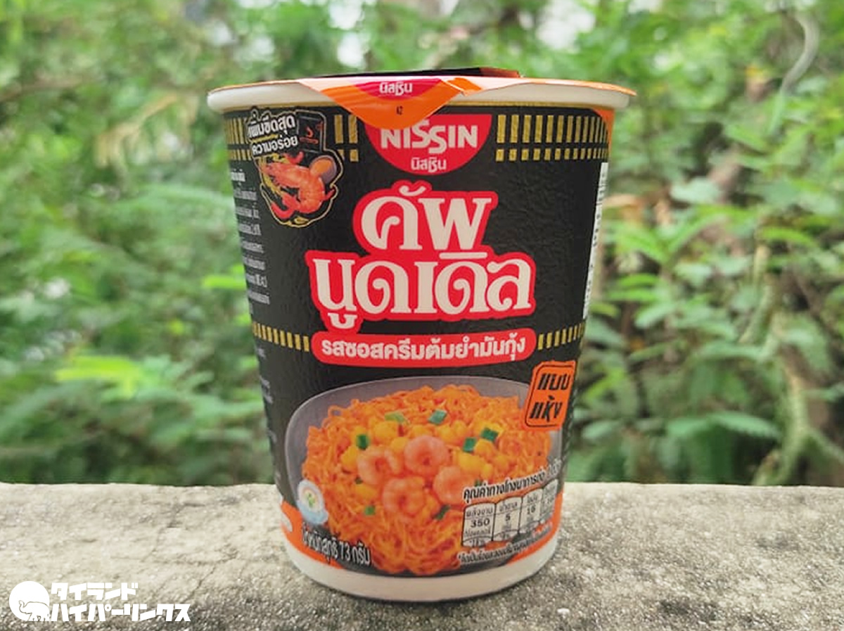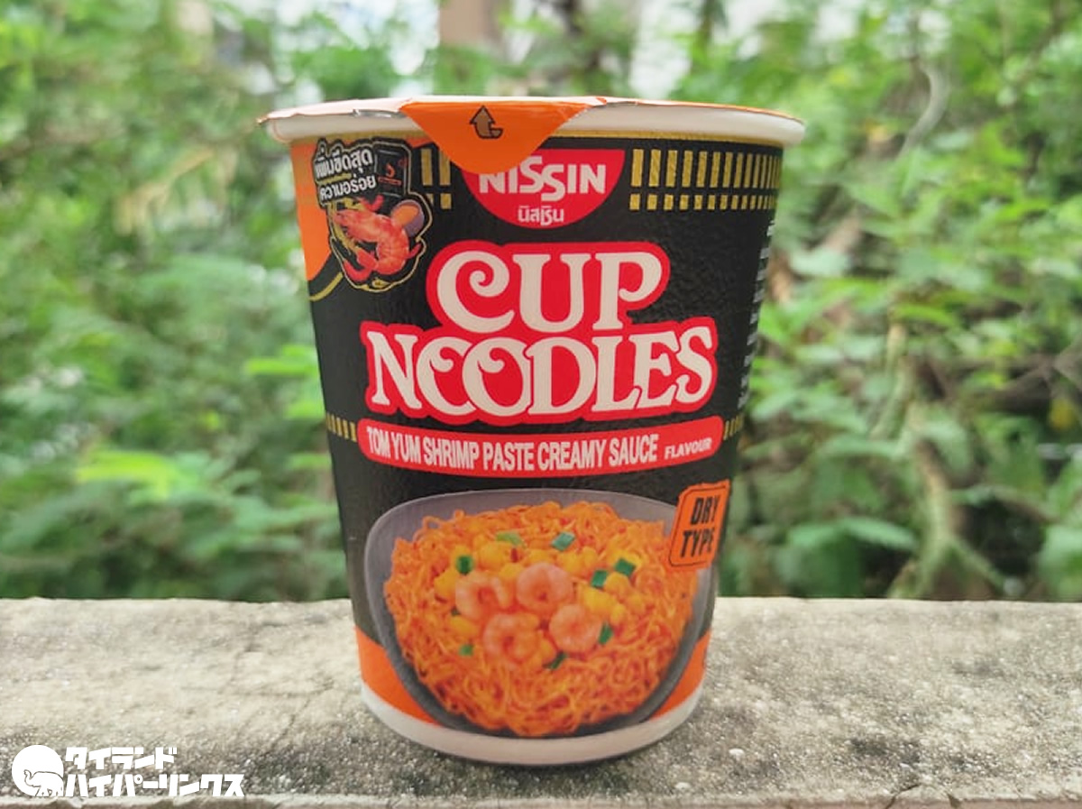 タイでも汁なしの日清カップヌードルが登場。「TOM YUM SHRIMP PASTE CREAMY SAUSE FLAVOUR」、つまりトムヤムクン味の汁なしカップヌードルです。