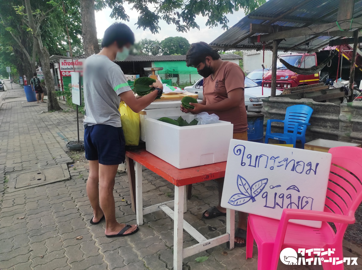 面白そうなのでクラトム屋さんに寄ってみると、お兄さんが1人買い物中。100グラム50バーツのクラトムを大量に買っていました。大きい葉や小さい葉など様々で、自分で気に入った葉を選べるようです。