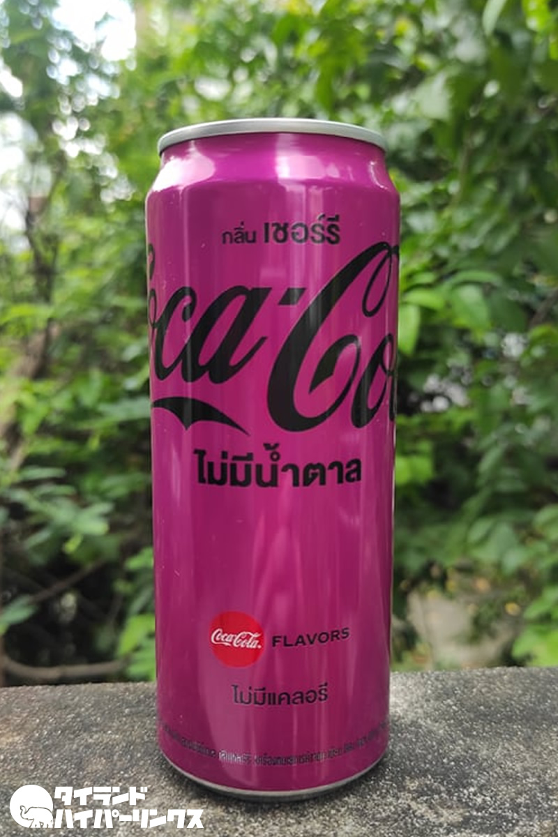 この日に出会ったのは、高貴に輝く紫色の缶。これは何の風味かと見てみると、チェリー風味でした。昔で言う、チェリーコークですね。