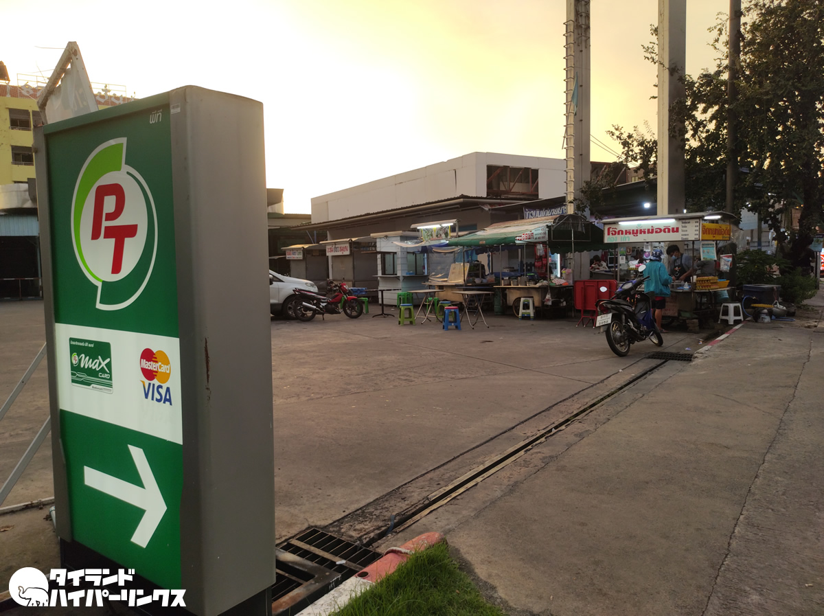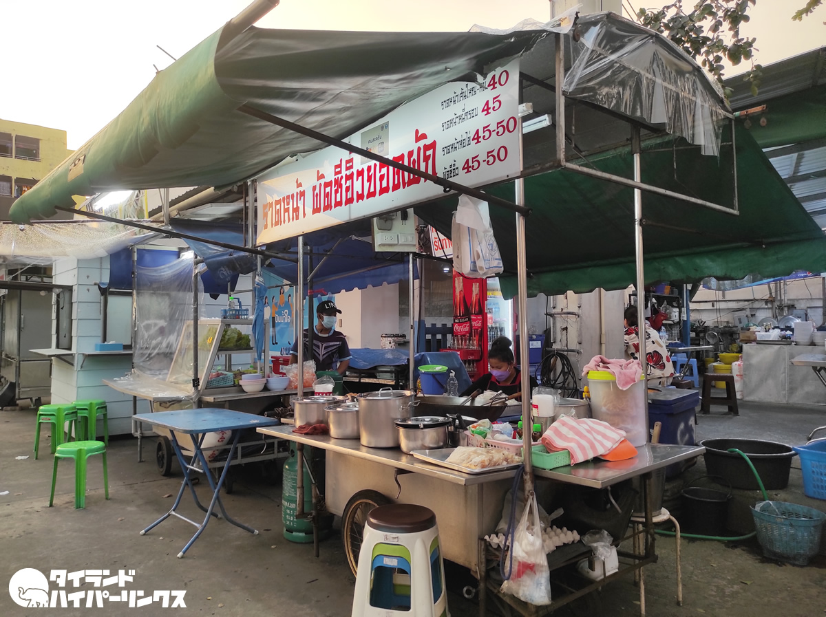 そんな中で友人に誘われて訪れたのが、バンコク・ラプラオ通りソイ87のガソリンスタンド・PTの横にある屋台。ここでお勧めと言われたのが、米粉麺にあんをかけた「ラートナー(ราดหน้า)」です。価格は40バーツから50バーツ。