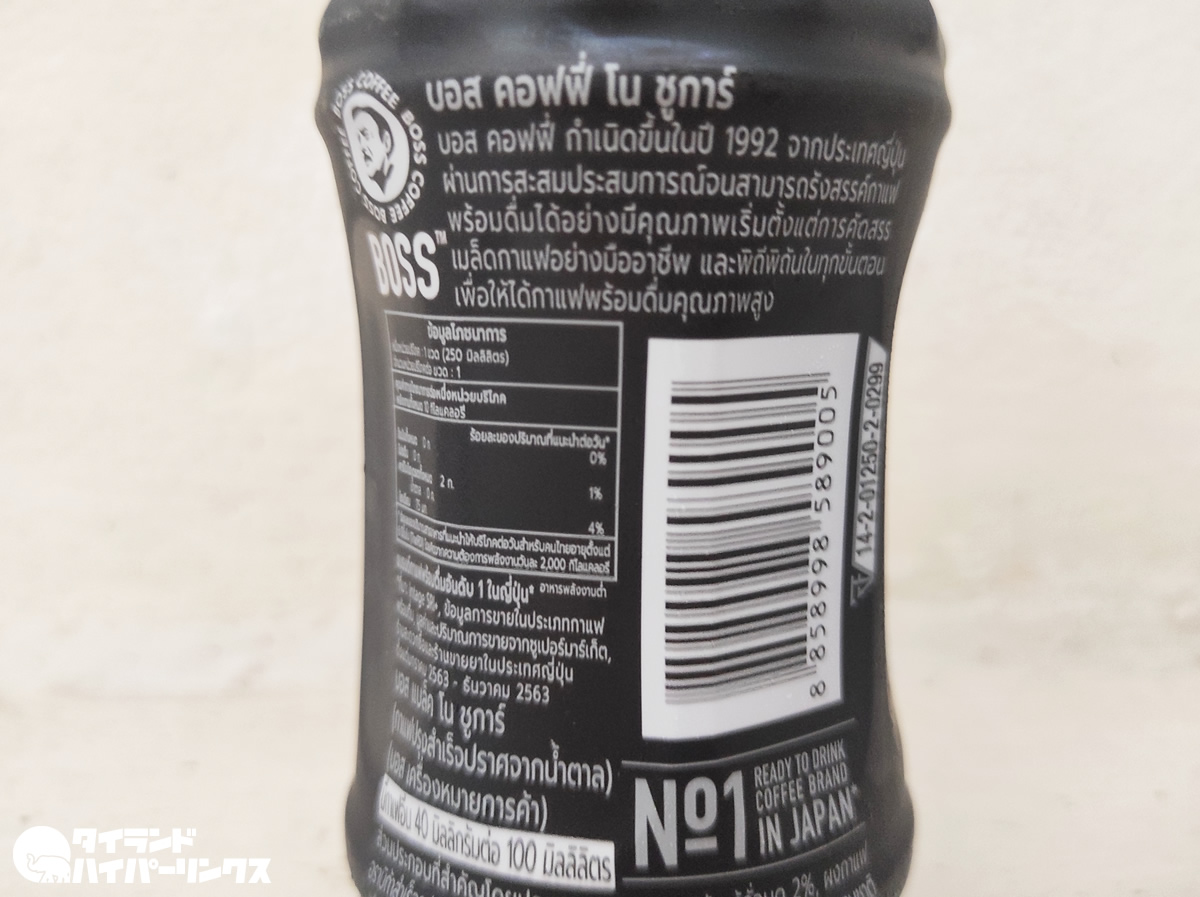 そんな中、コンビニで見つけたのがサントリー「BOSS」の無糖コーヒーのペットボトル。ネット上には殆ど情報はありませんが、これは新製品ですね!パッケージには「1992年に日本で発売された高品質のコーヒー」と、タイ語で「BOSS」の歴史が書かれています。