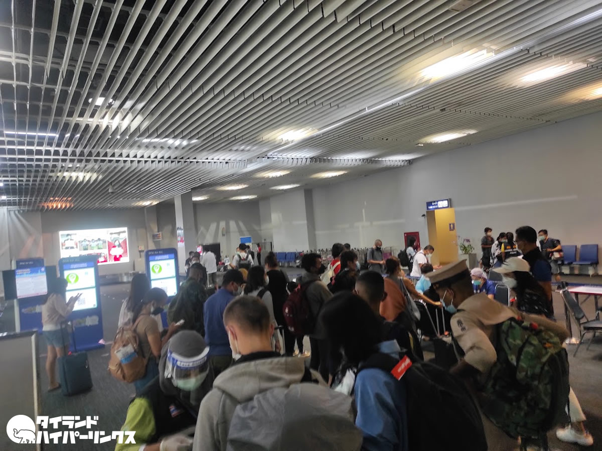 クラビ空港で降機すると、そこには乗客の長い列が出来ていました。