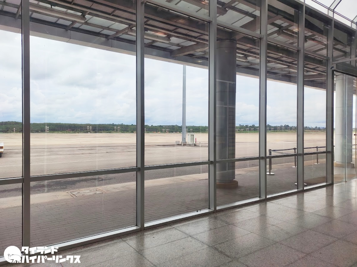 天井が高く、開放的な「IMMSOOK RESTAURANT(ร้านอาหารอิ่มสุข)」。ガラス窓の向こうは滑走路があり、航空機を眺めながら食事をする事ができます。ただし今の時期(2021年10月)はコロナ禍でフライト数も少なく、航空機を見ることは出来ませんでした。