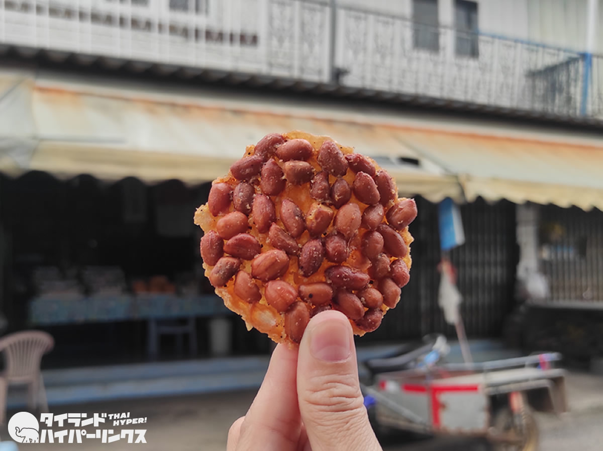 タマリンドやマンゴーのお菓子と共に並んでいたのが、「カノムトゥアトード(ขนมถั่วทอด)」。