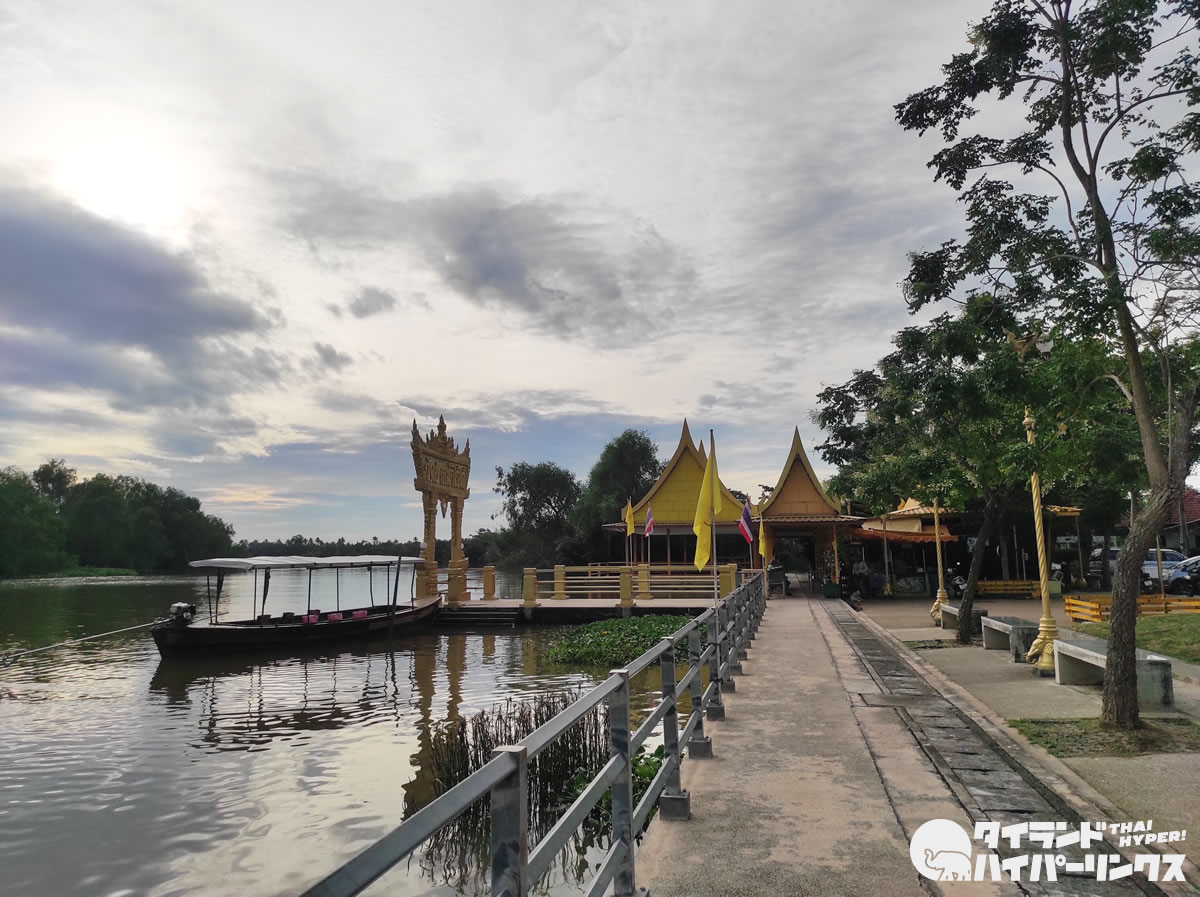 巨大なピンクのガネーシャで有名な「ワット・サマーン」を目指して向かったチャチューンサオ県で、同じくバンパコン川沿いにある黄金寺院「ワット・パクナム ジョーロー」を訪れました。