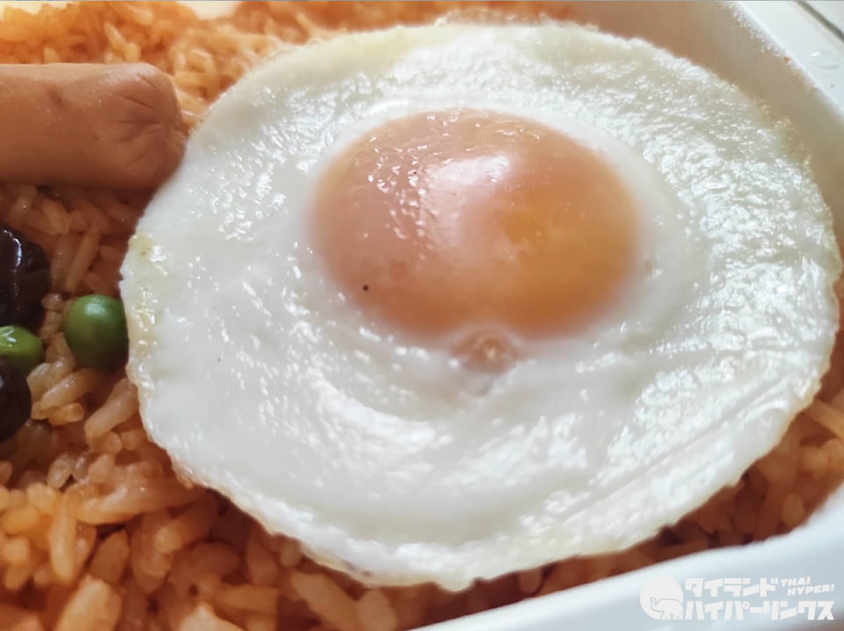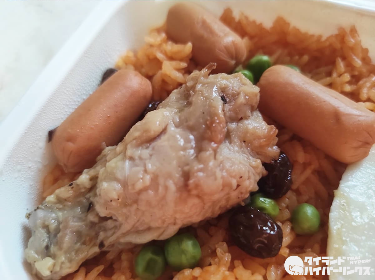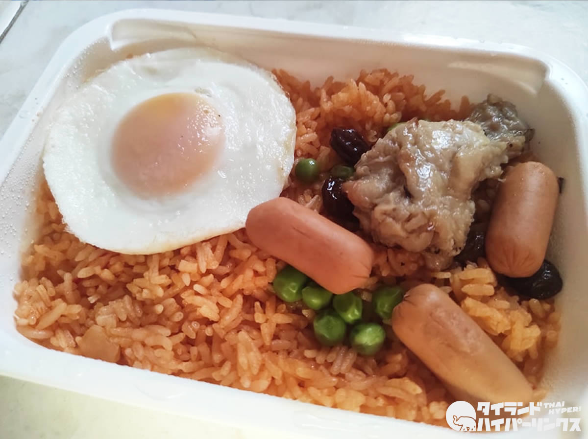 タイではケチャップで味付けした炒飯のことを「カオパット・アメリカン(ข้าวผัดอเมริกัน)」と呼びます。つまりアメリカの炒飯です。個人的にはあまり惹かれることがないため注文しませんが、この日セブンイレブンで見つけた「カオパット・アメリカン」にはつい手が出てしまいました。