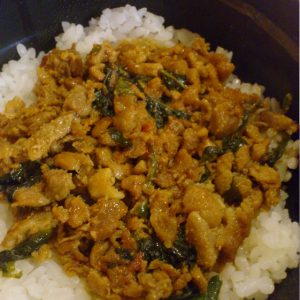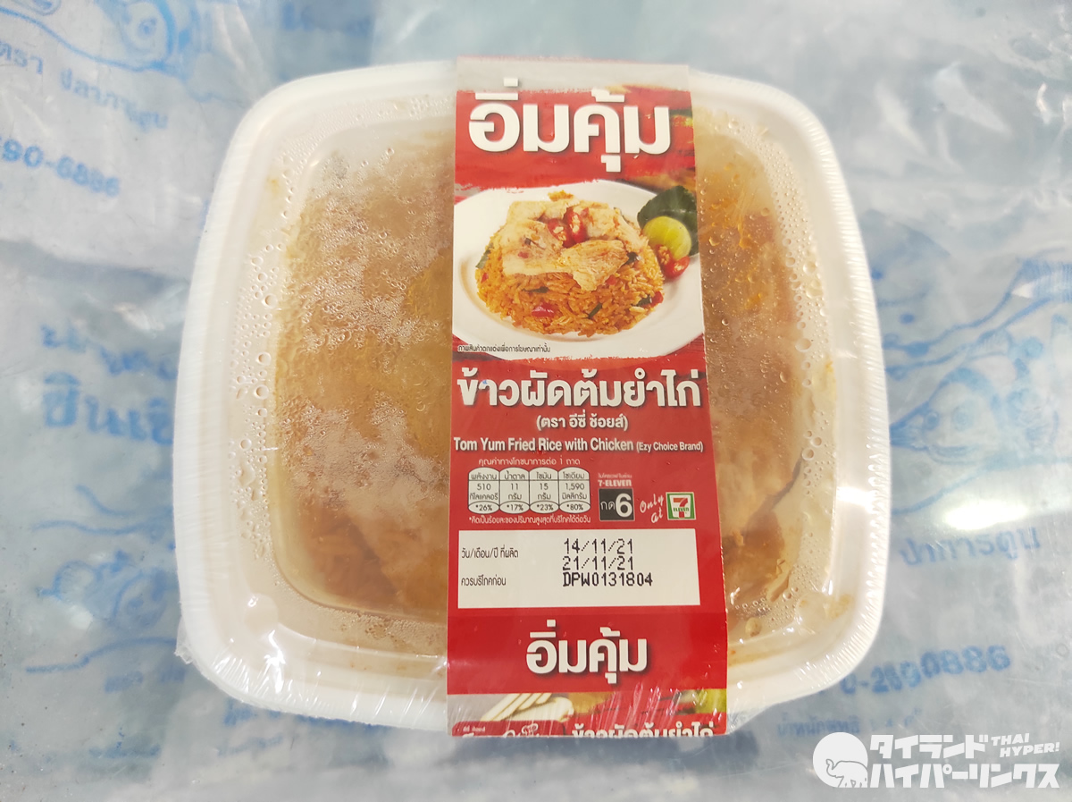 トムヤムというのは、日本人には「トムヤムクン」でお馴染みの、辛くて酸っぱい味付けの料理のこと。タイのセブンイレブンの「トムヤムチャーハン弁当」は「カオパット・トムヤムガイ(ข้าวผัดต้มยำไก่)」なので、鶏肉入りです。