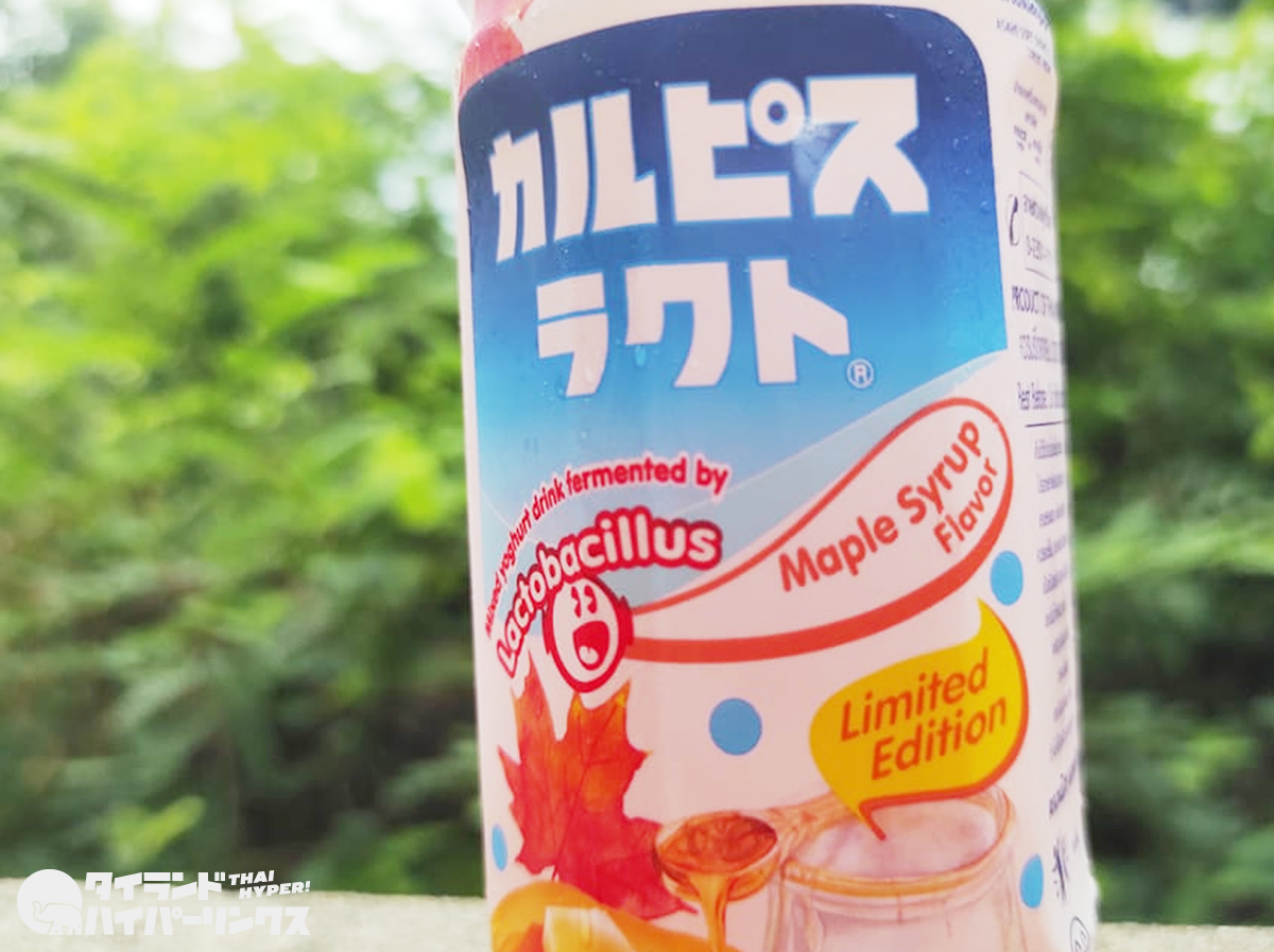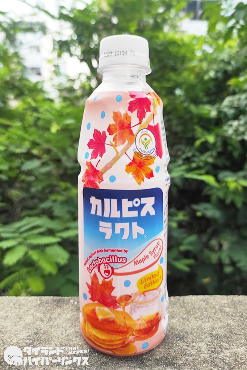 一方常夏のタイのコンビニでも、秋を感じることができました。冷蔵棚に並んでいたのは「カルピスラクト」メープルシロップ味。パッケージには、赤く染まったメープルの葉。メープルとはカエデのことですね。