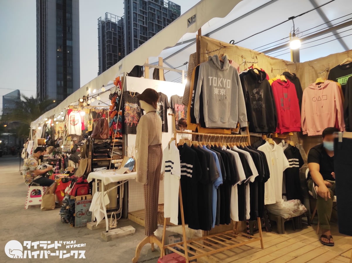 「ラチャダー鉄道市場」よりは規模的には小さくなりますが、おしゃれなファッションや小物のお店が並びます。古着を扱うお店も何店かありました。