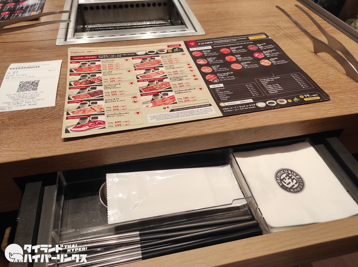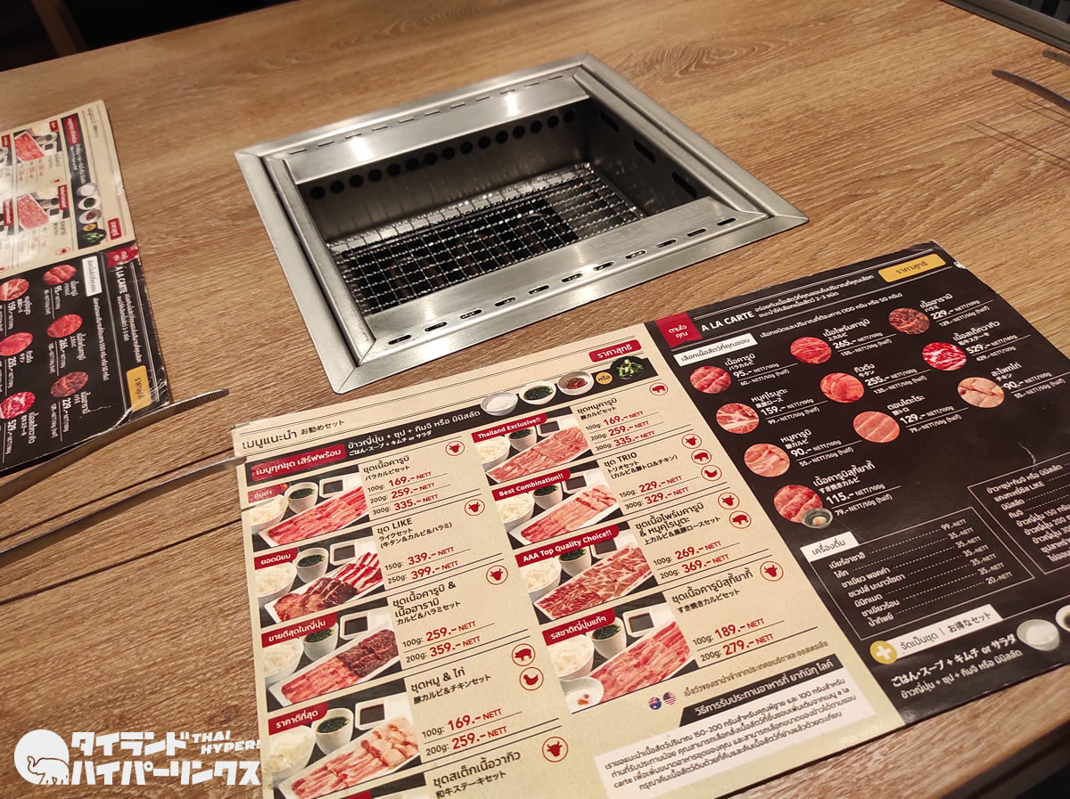 一番安いセットメニューは「バラカルビセット」で、肉100グラムが169バーツ。なおオーダーはスマホで行います。