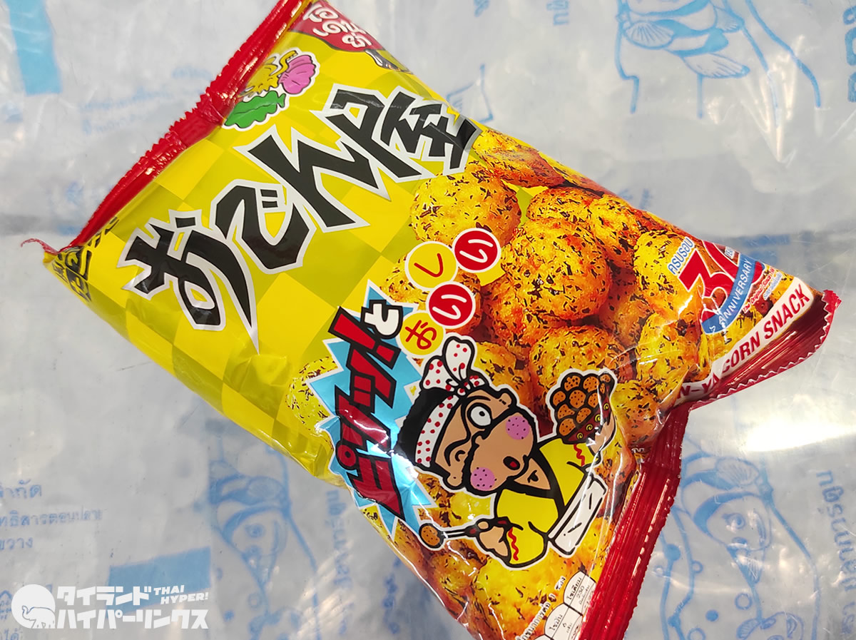 日本イメージのスナック菓子が色々ある中で、今回買ったのが「おでん屋(โอเดงย่า)」という関西風たこ焼き味のスナック菓子でした。「おでん屋」の歴史は古く、もう20年以上も販売されているようです。